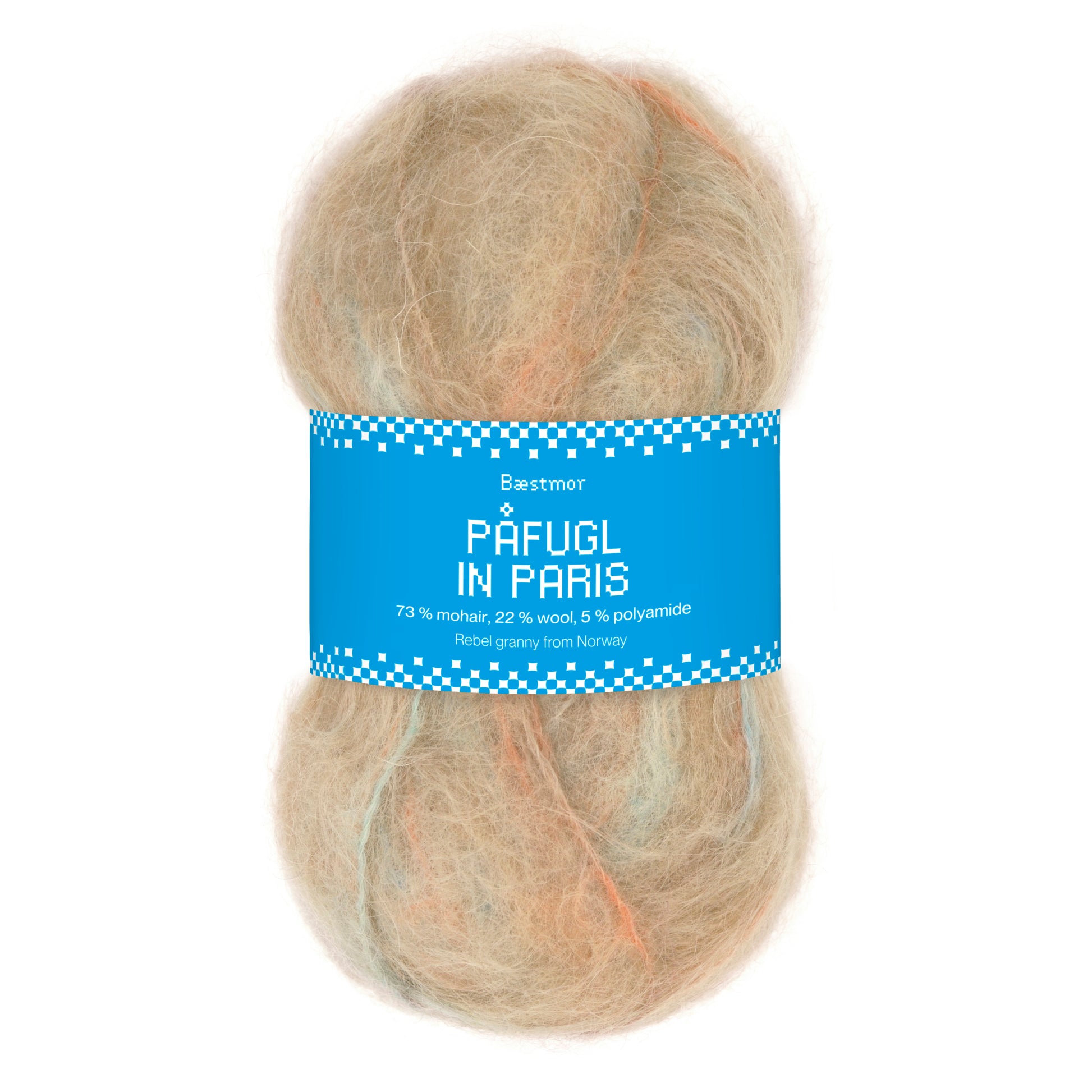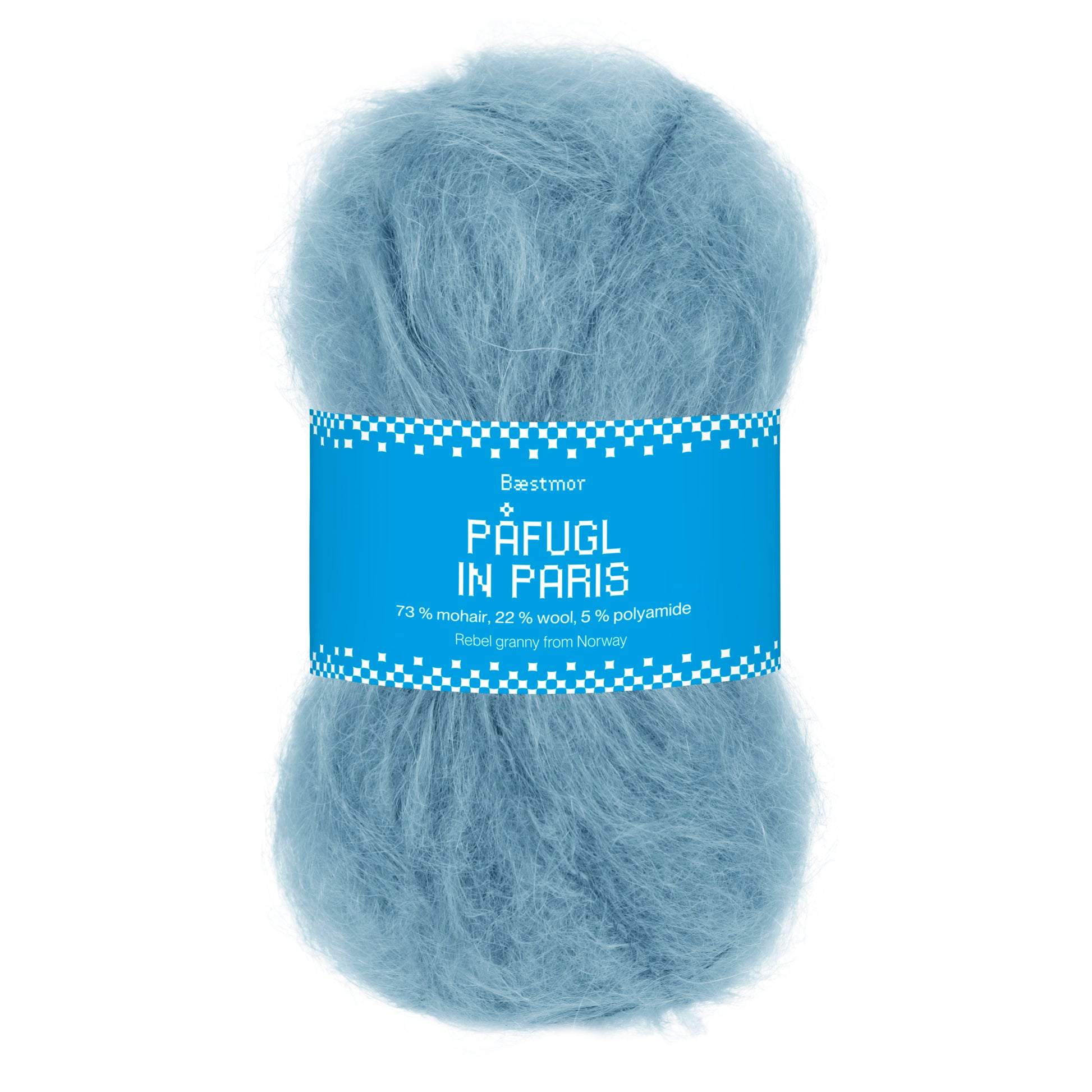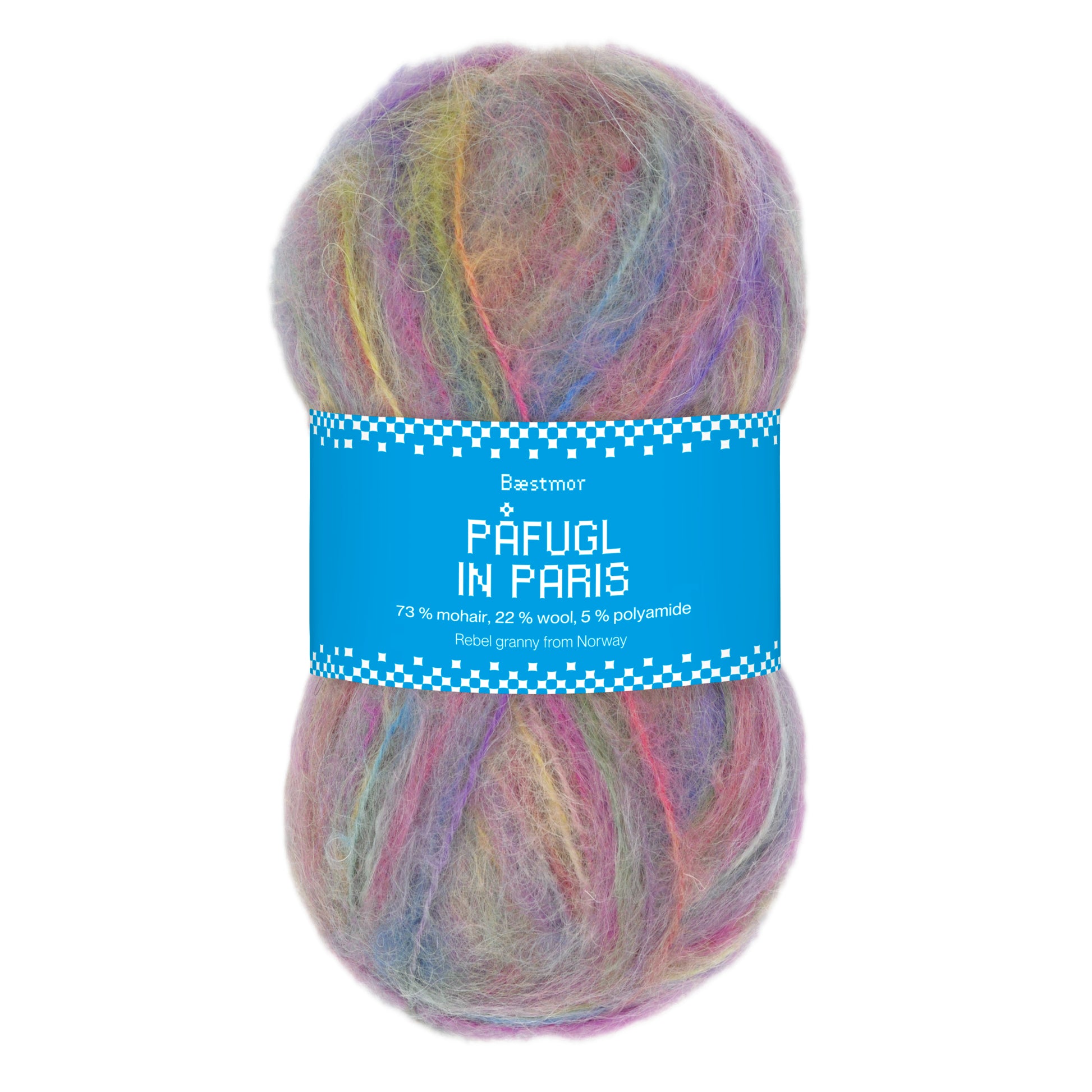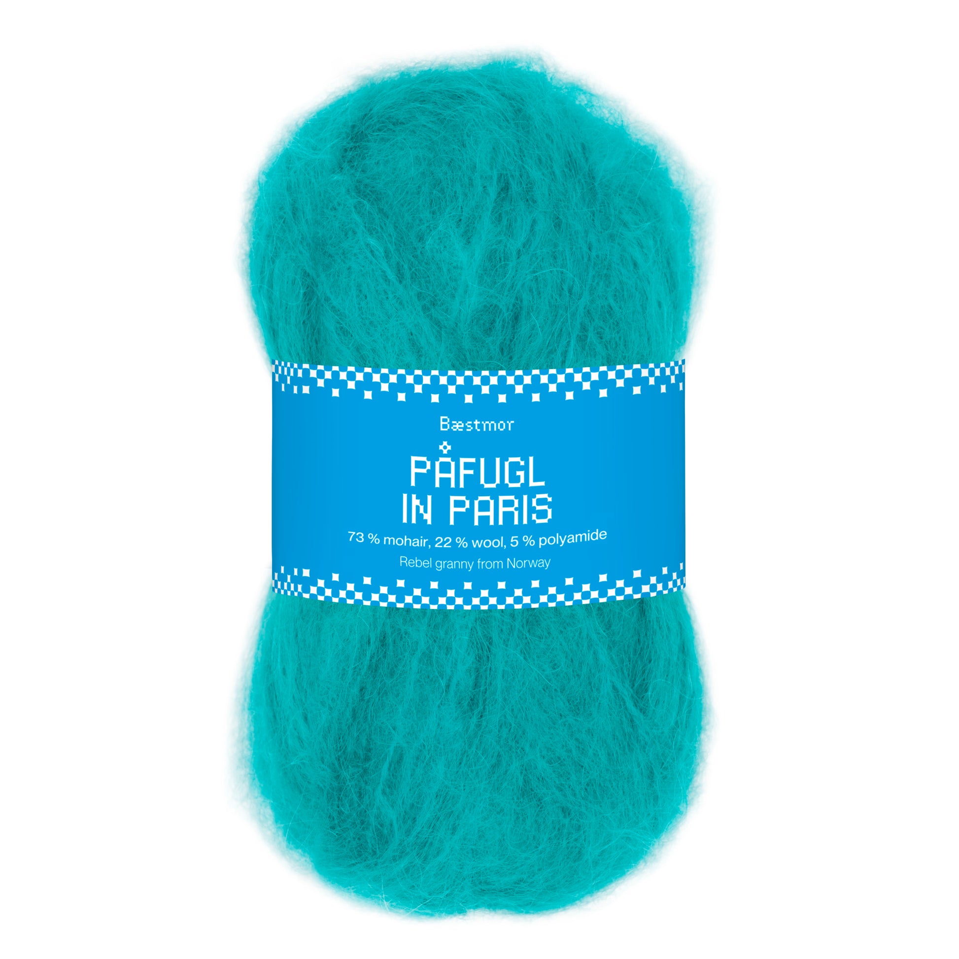 Påfugl in Paris fra Bæstmor er et eksklusivt børstet mohairgarn, som gir lette og luftige plagg.