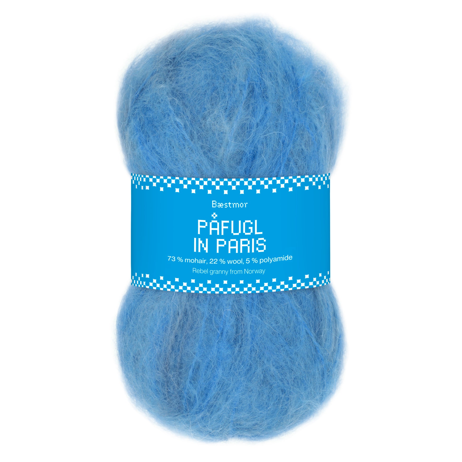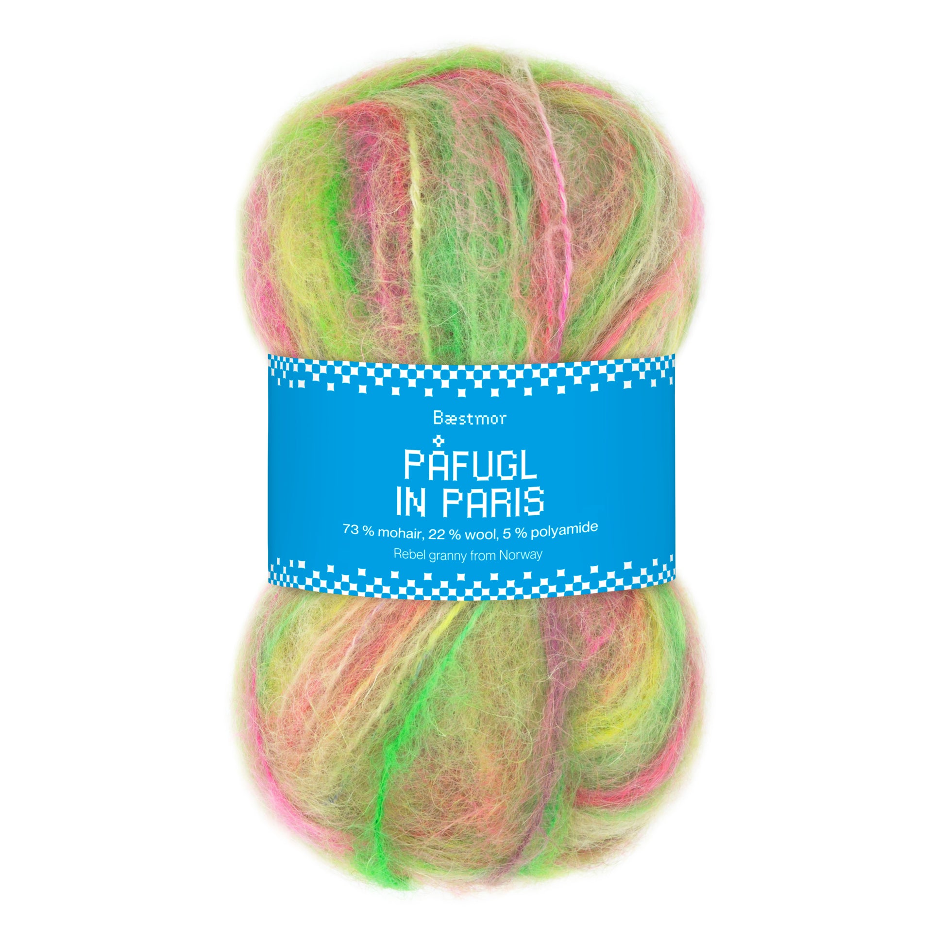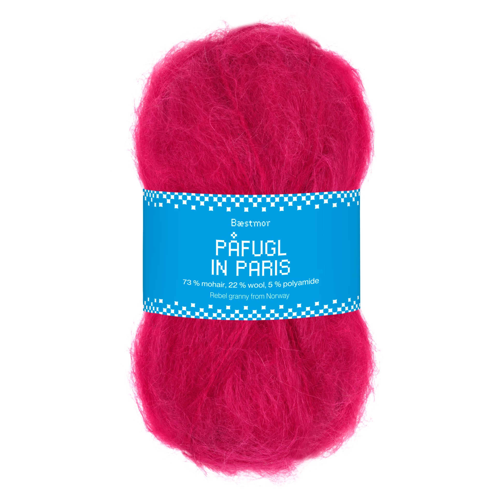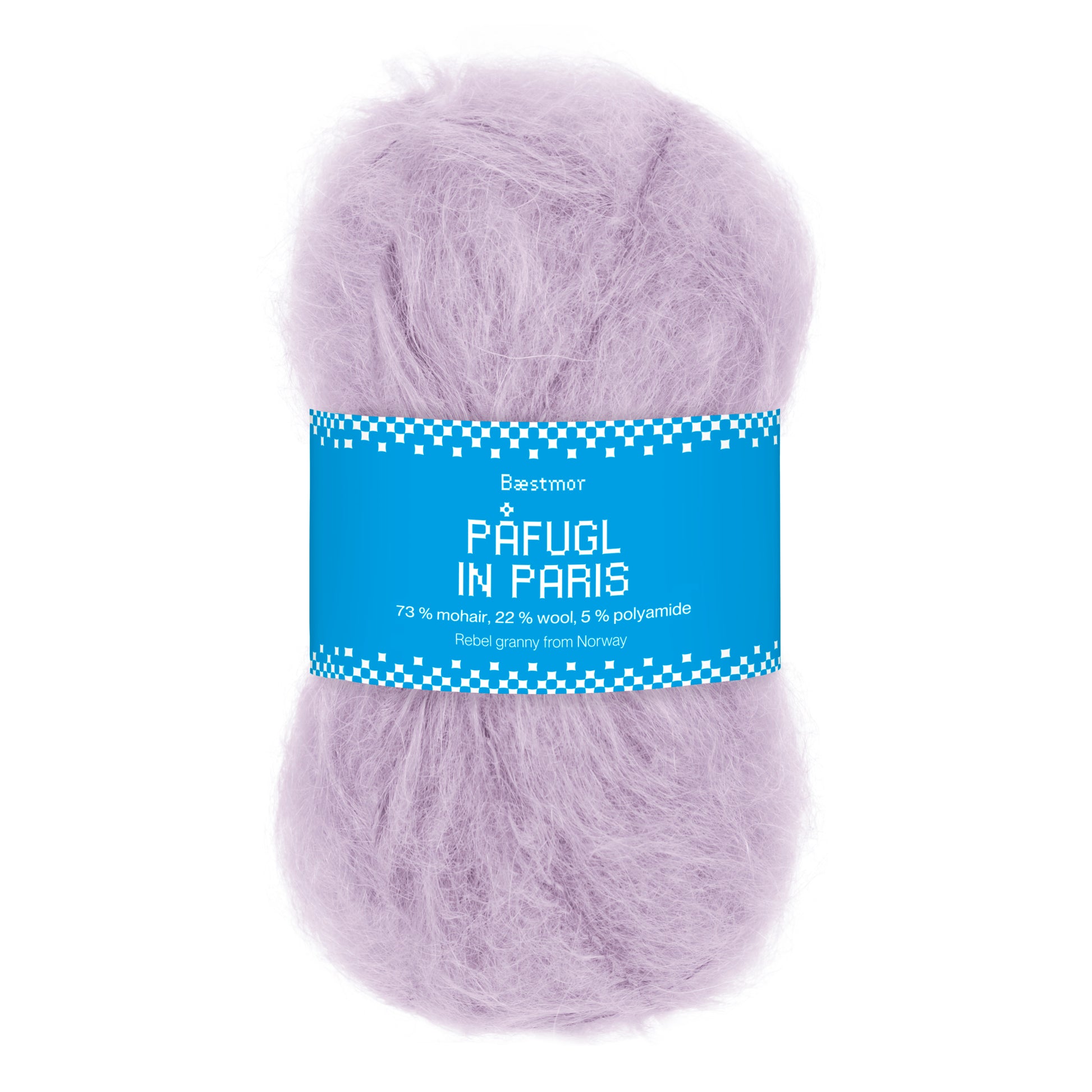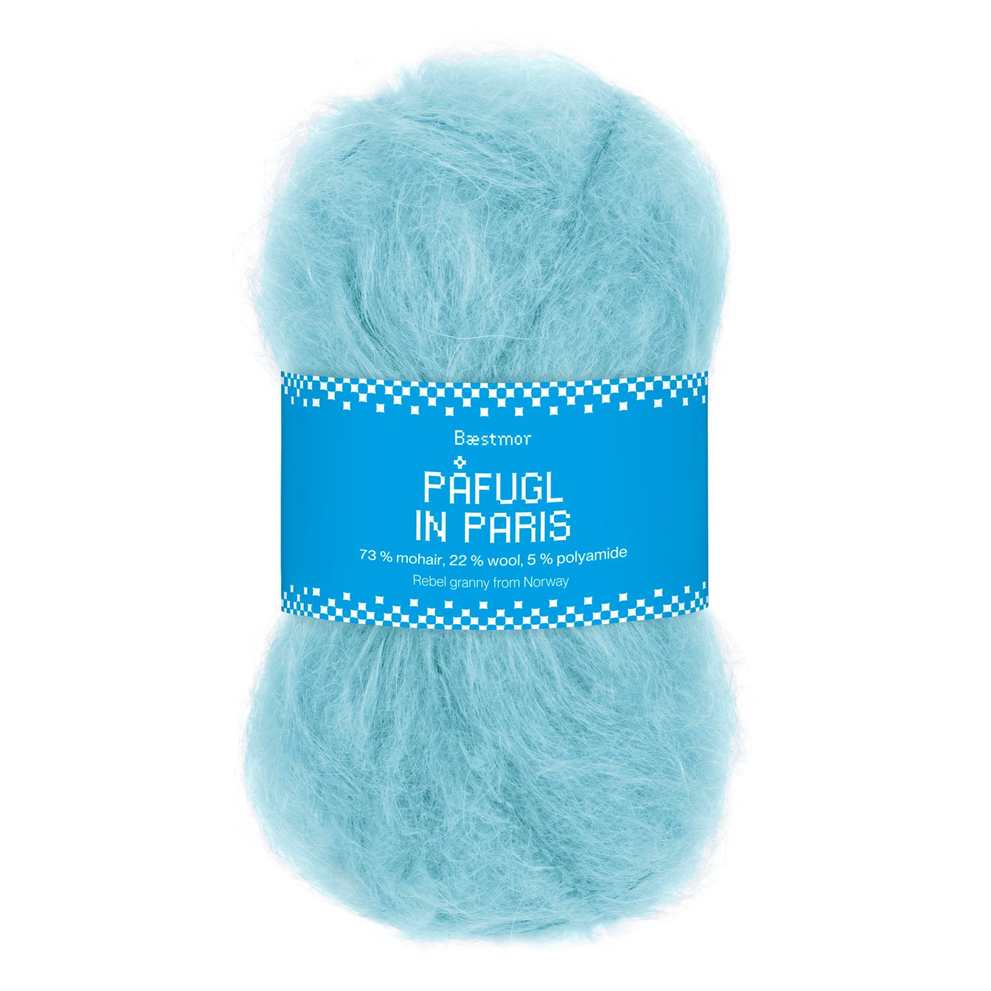 Påfugl in Paris fra Bæstmor er et eksklusivt børstet mohairgarn, som gir lette og luftige plagg.
