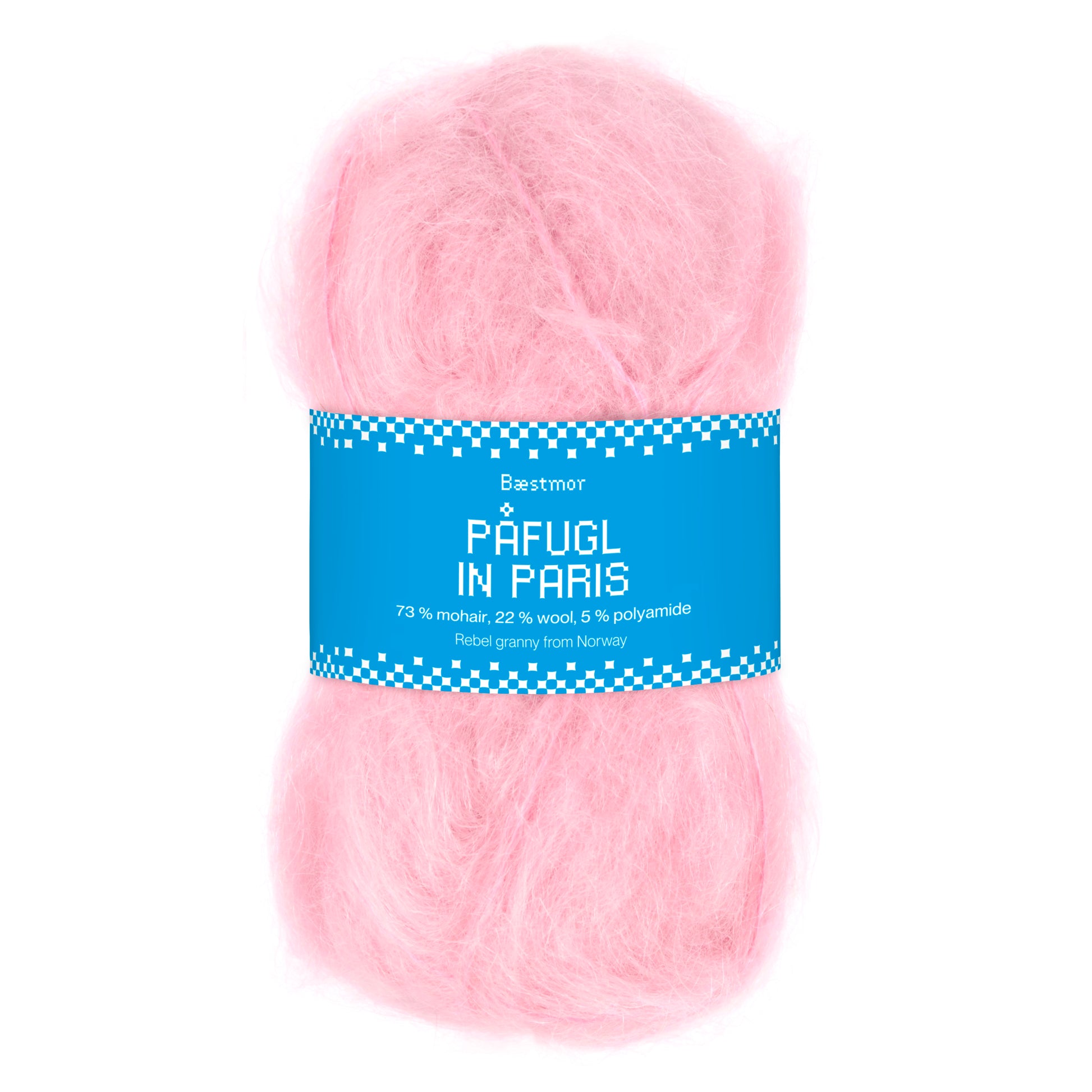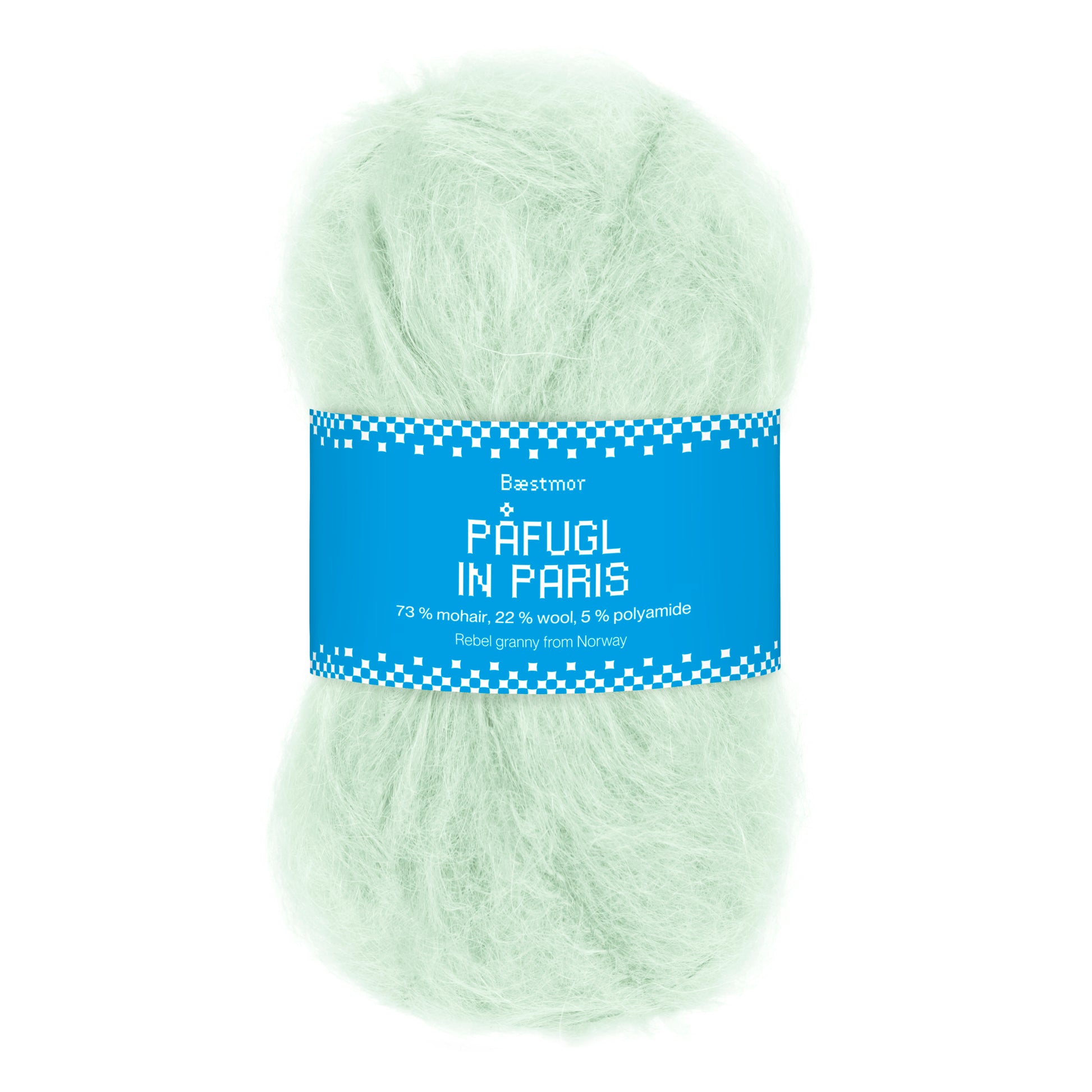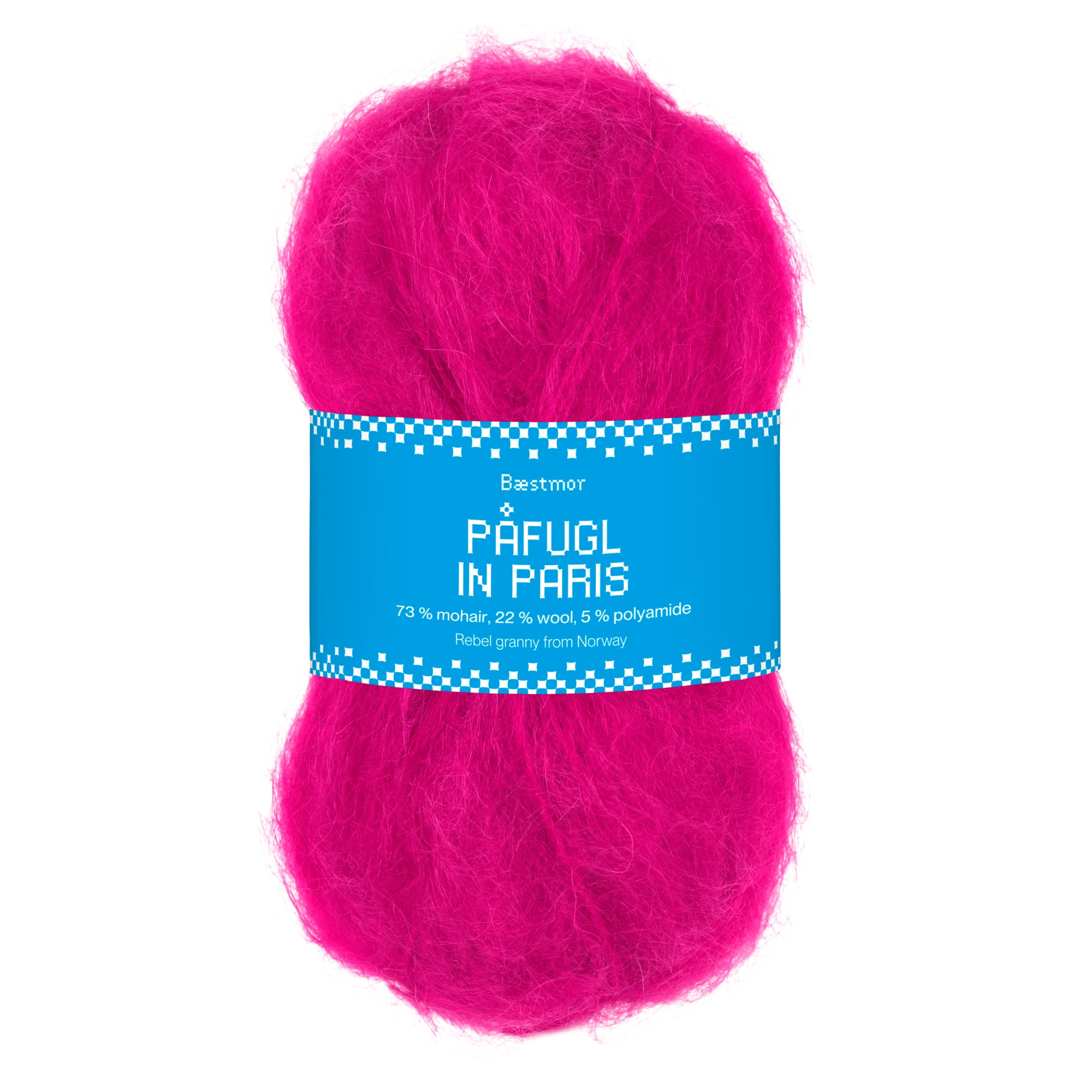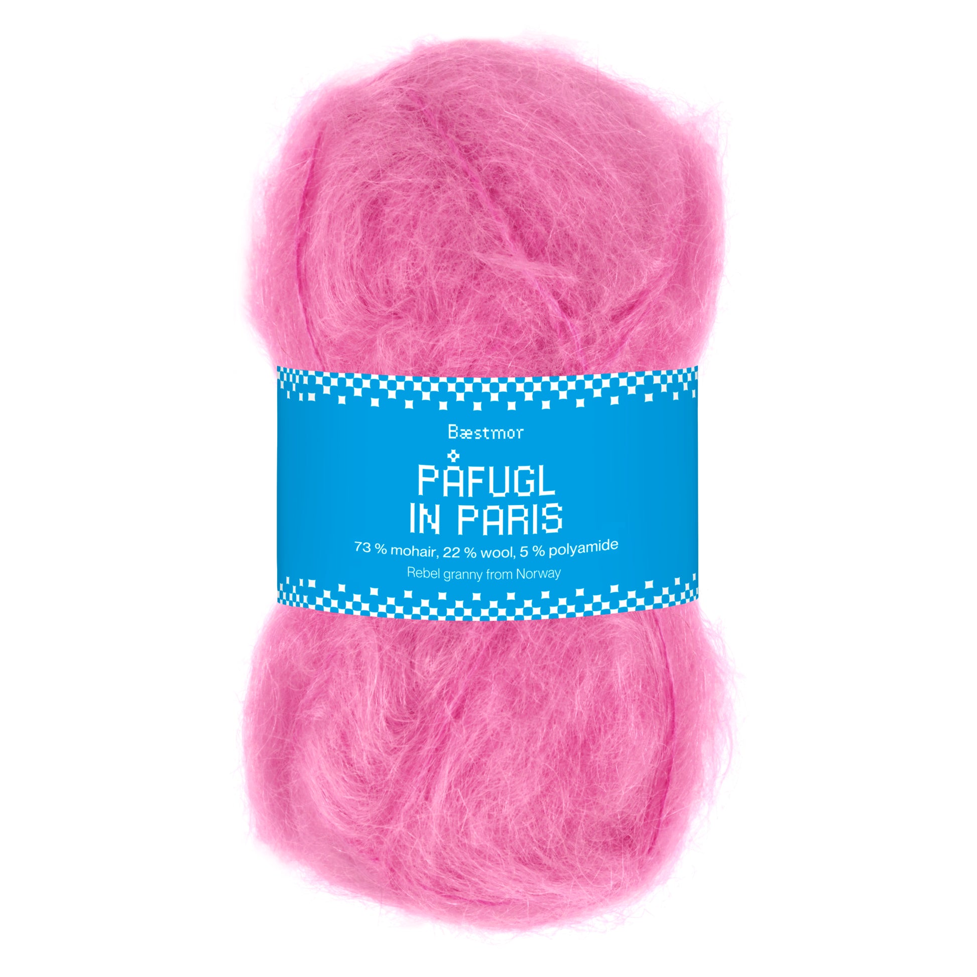Påfugl in Paris fra Bæstmor er et eksklusivt børstet mohairgarn, som gir lette og luftige plagg.