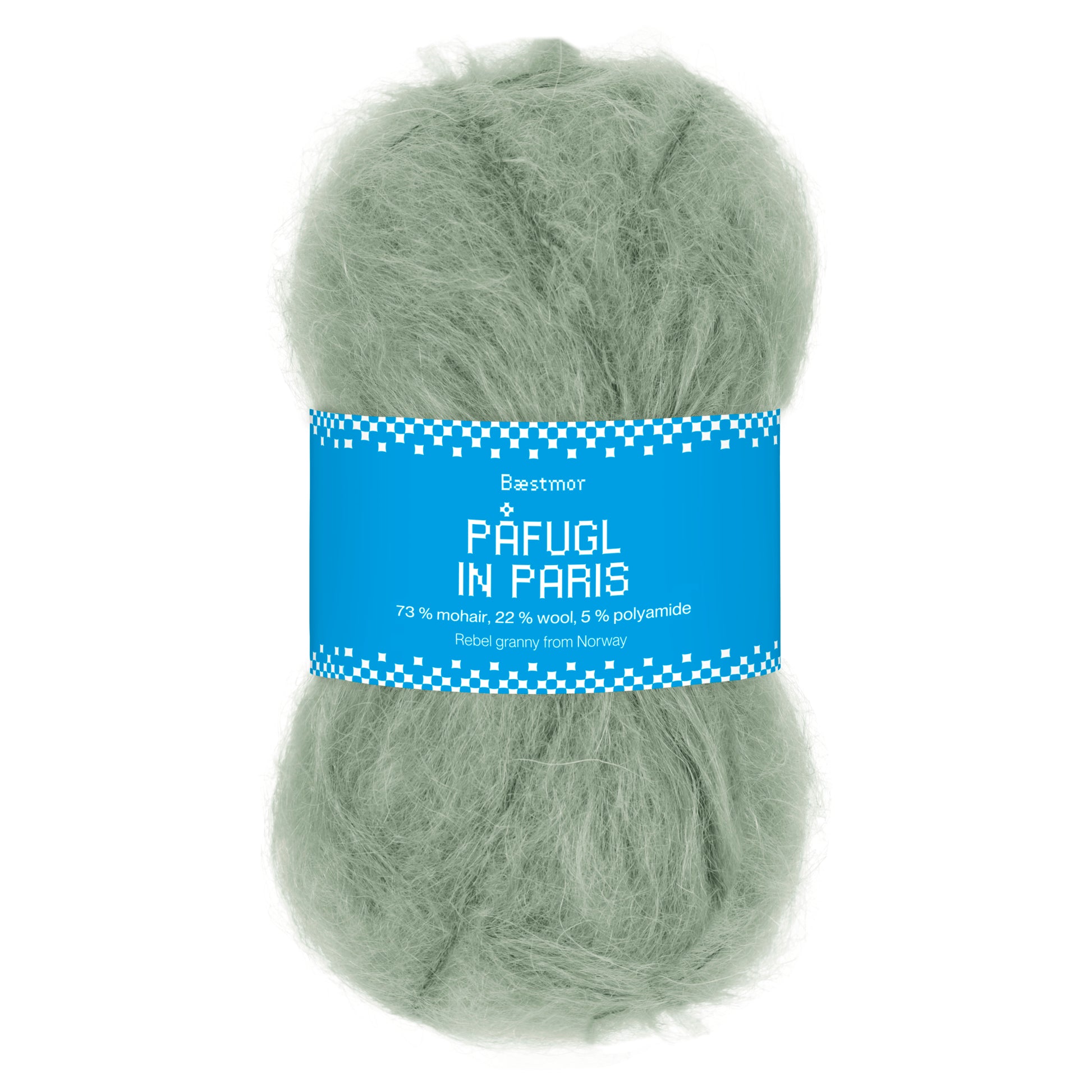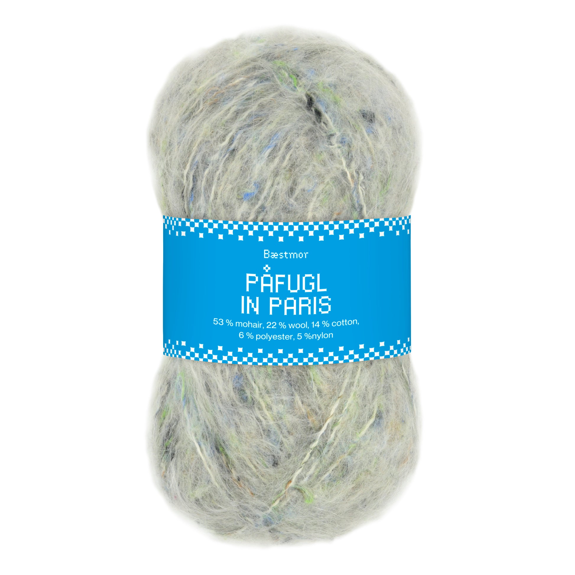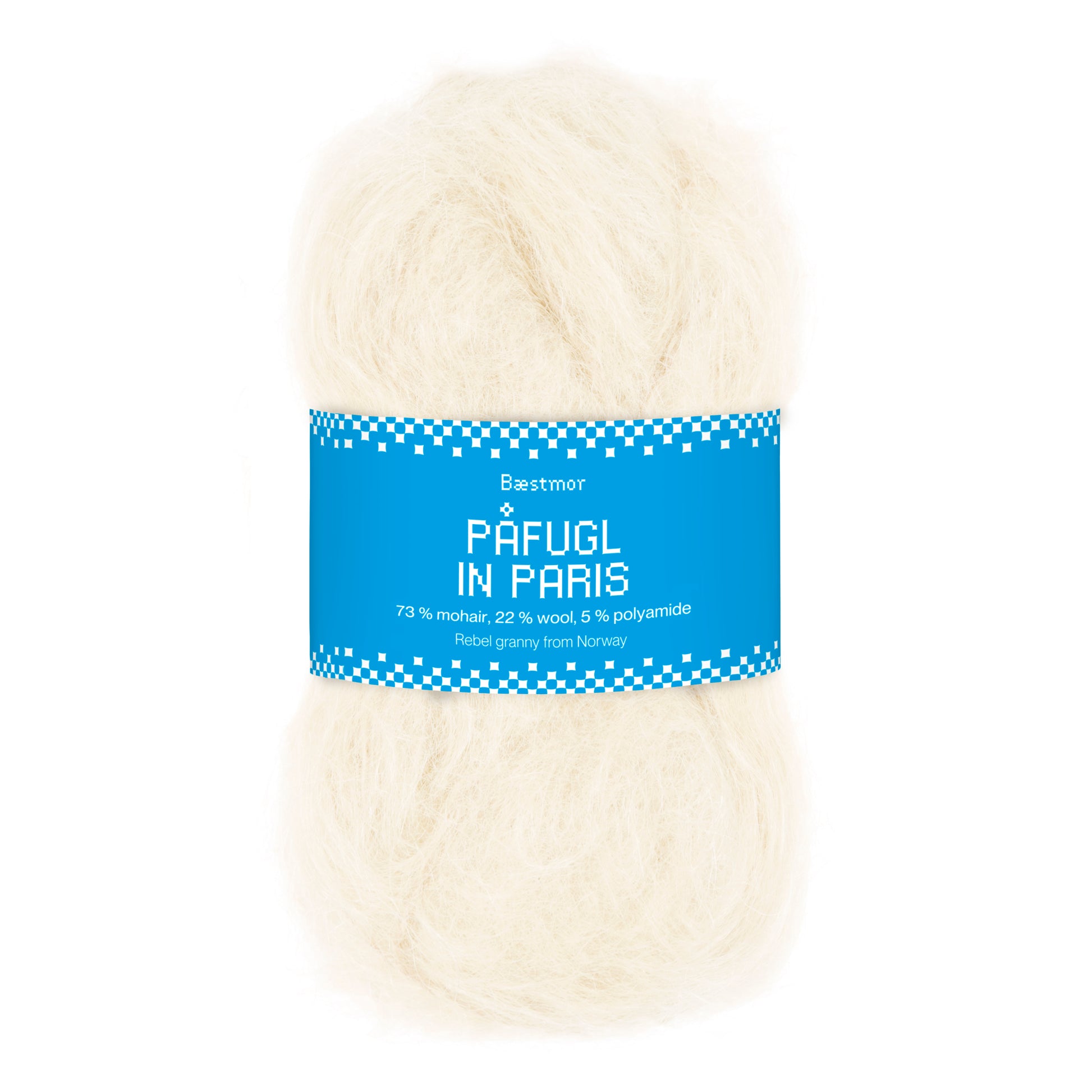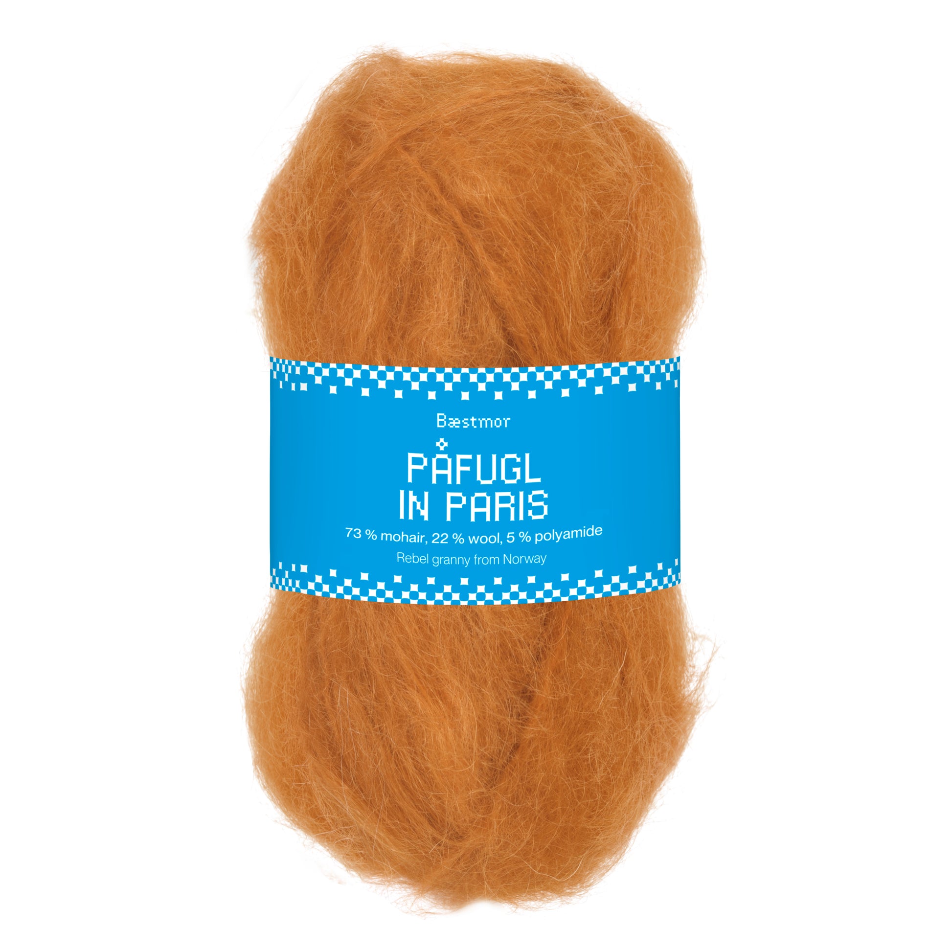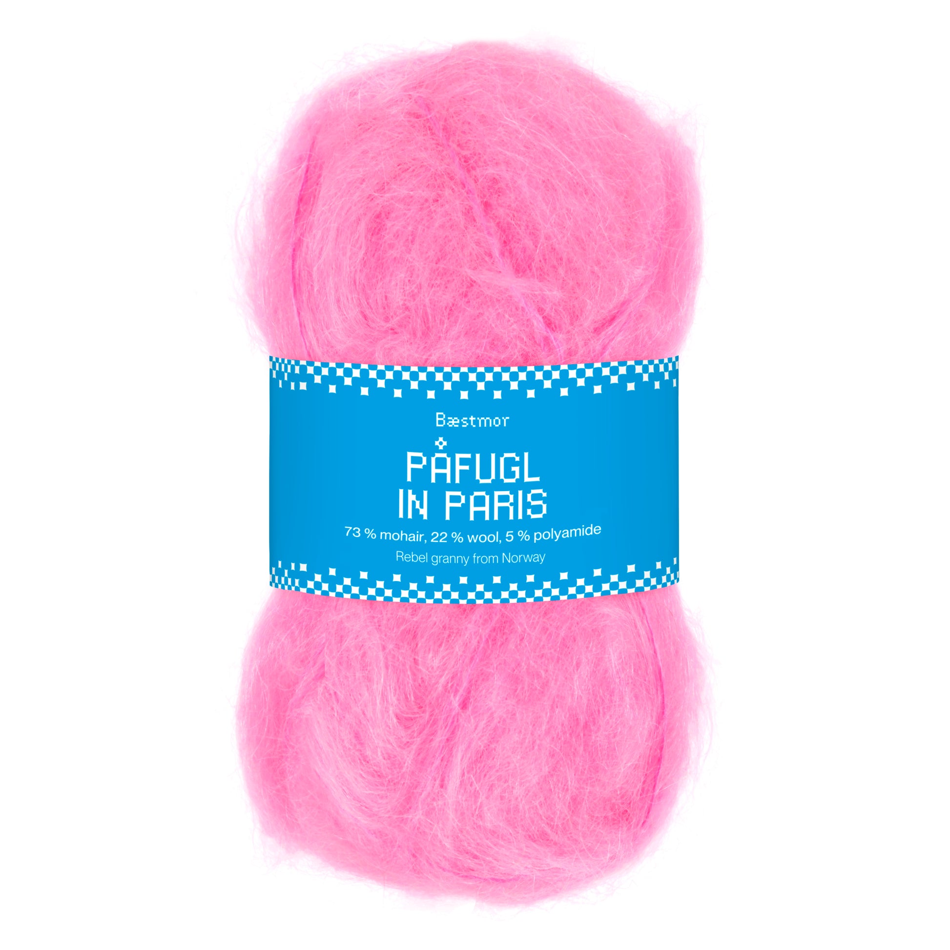 Påfugl in Paris fra Bæstmor er et eksklusivt børstet mohairgarn, som gir lette og luftige plagg.