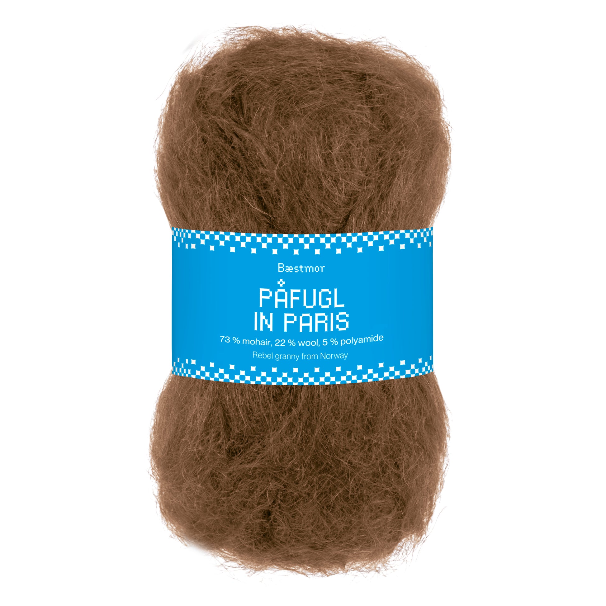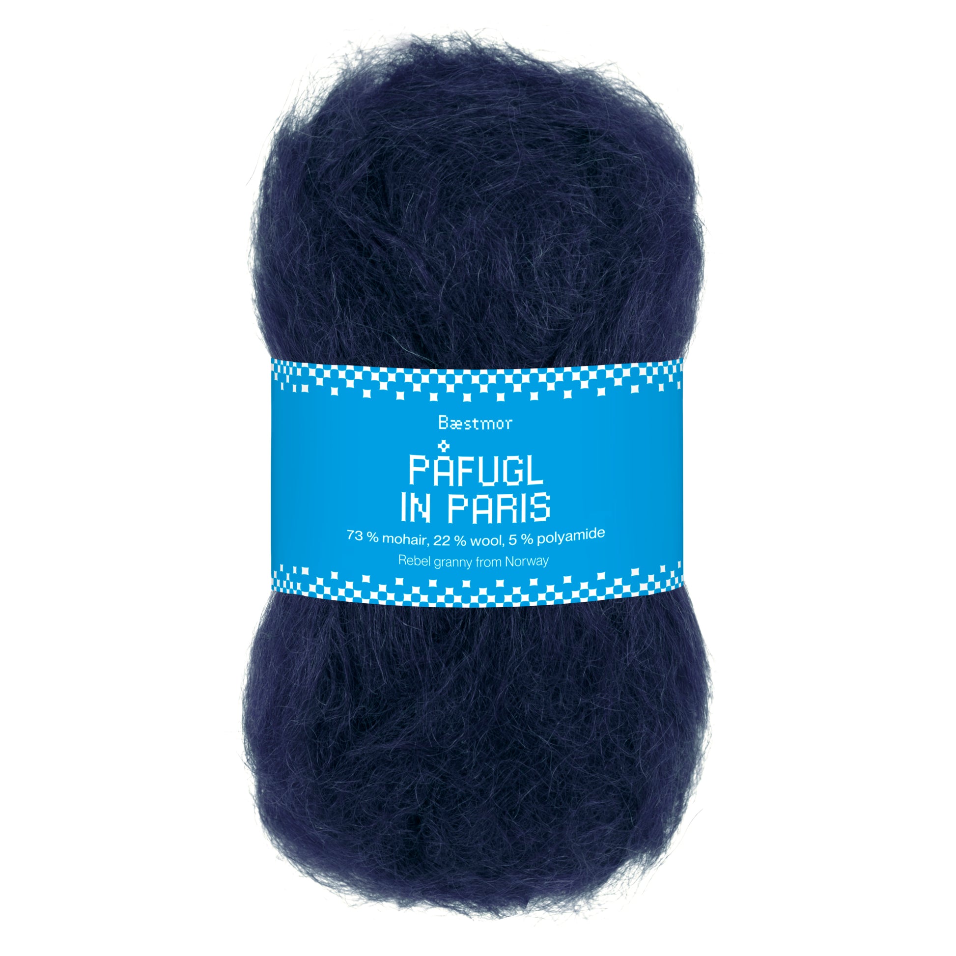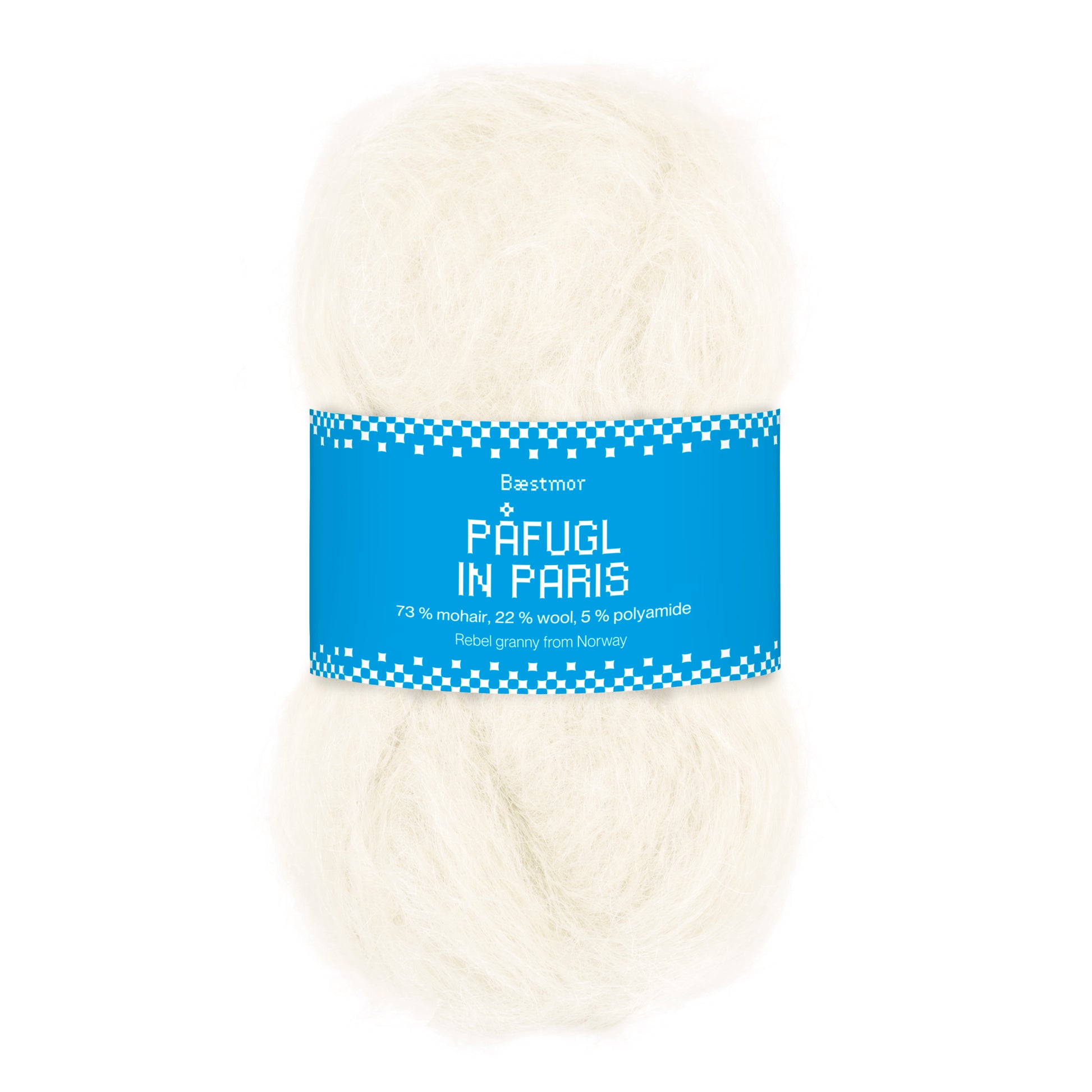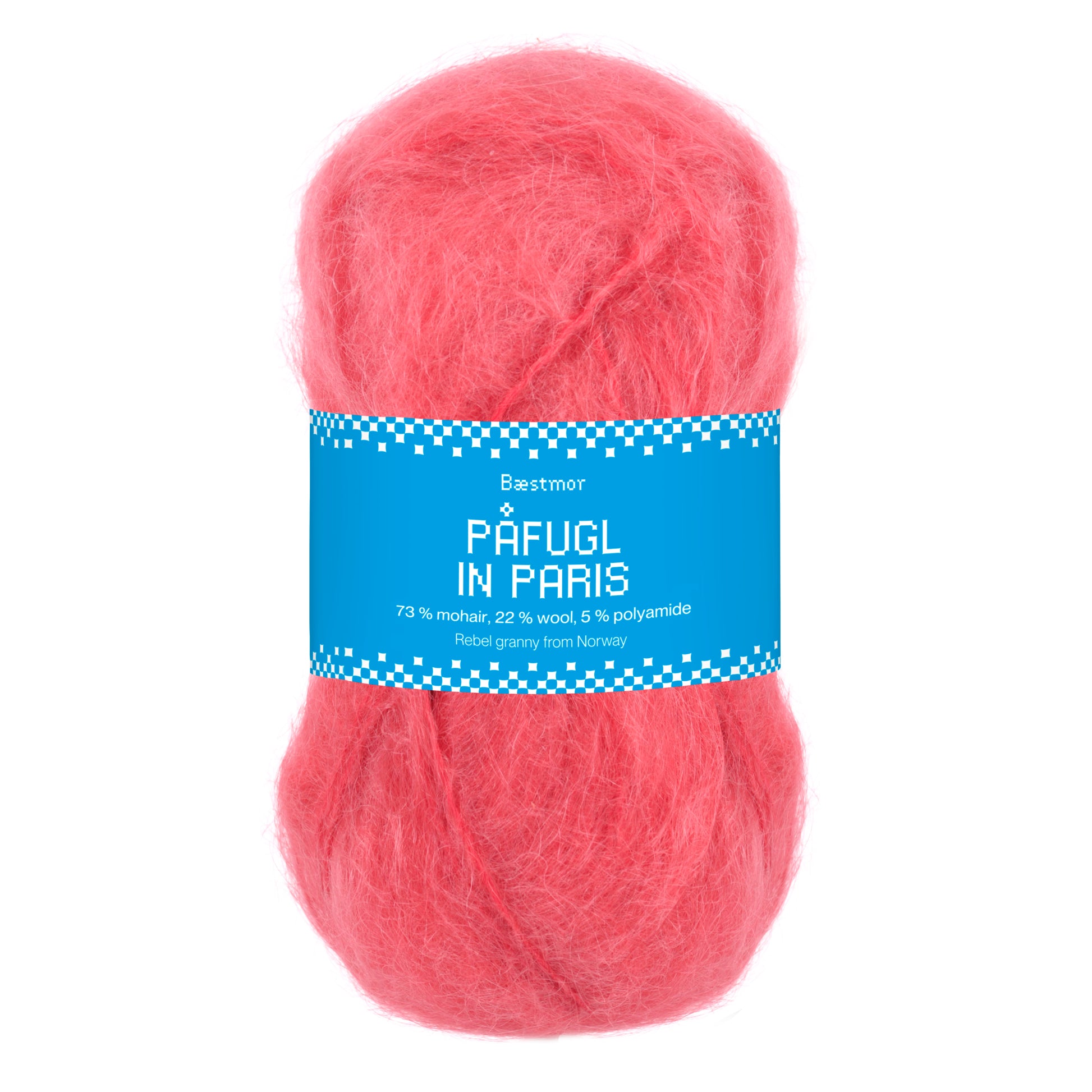 Påfugl in Paris fra Bæstmor er et eksklusivt børstet mohairgarn, som gir lette og luftige plagg.