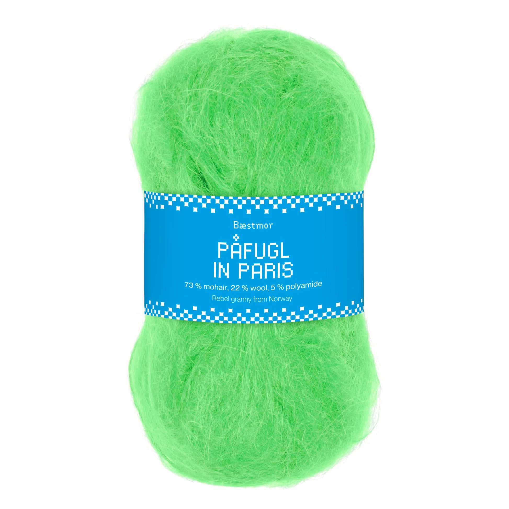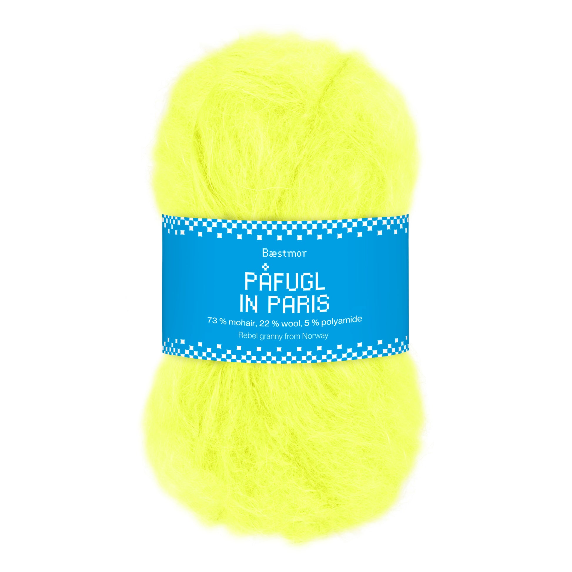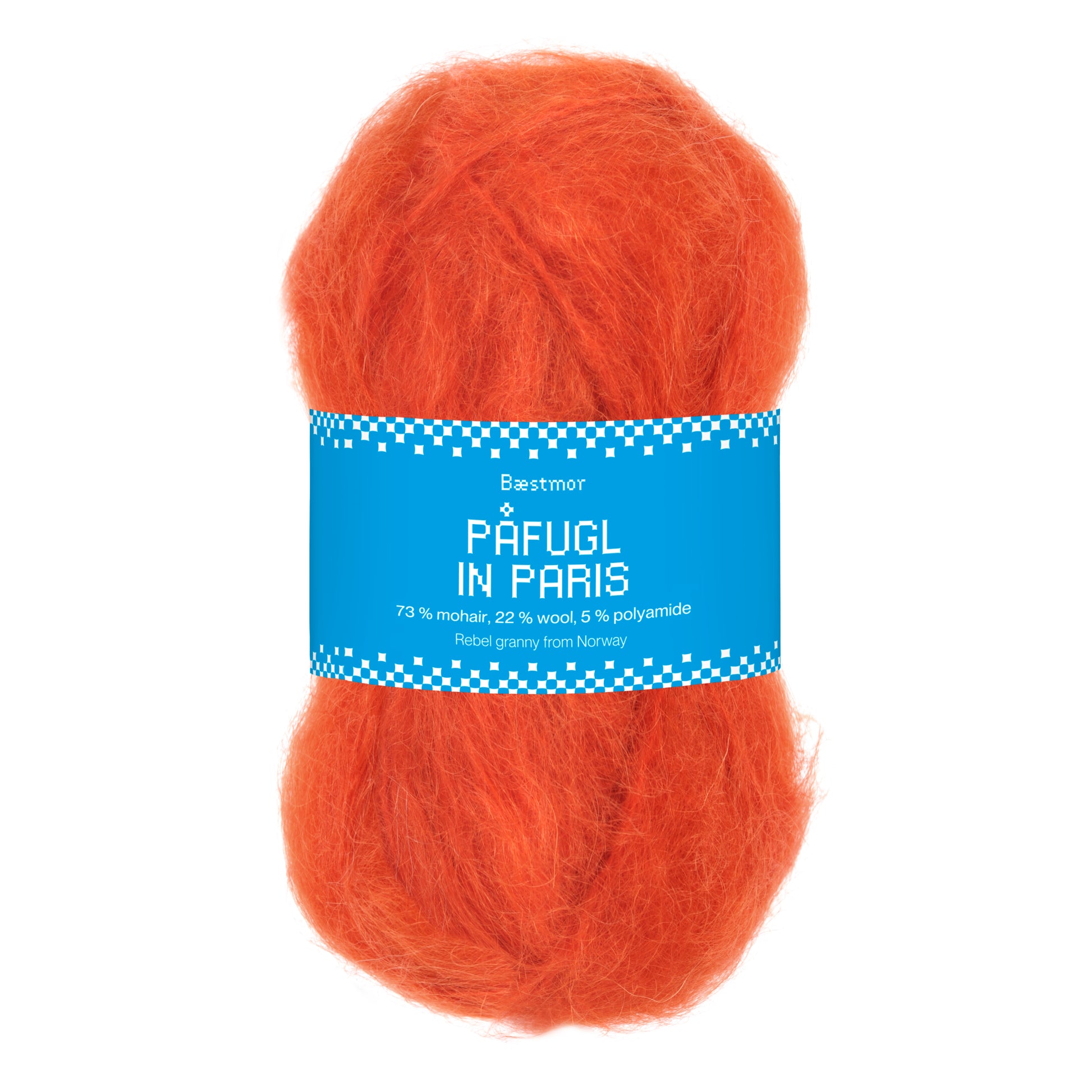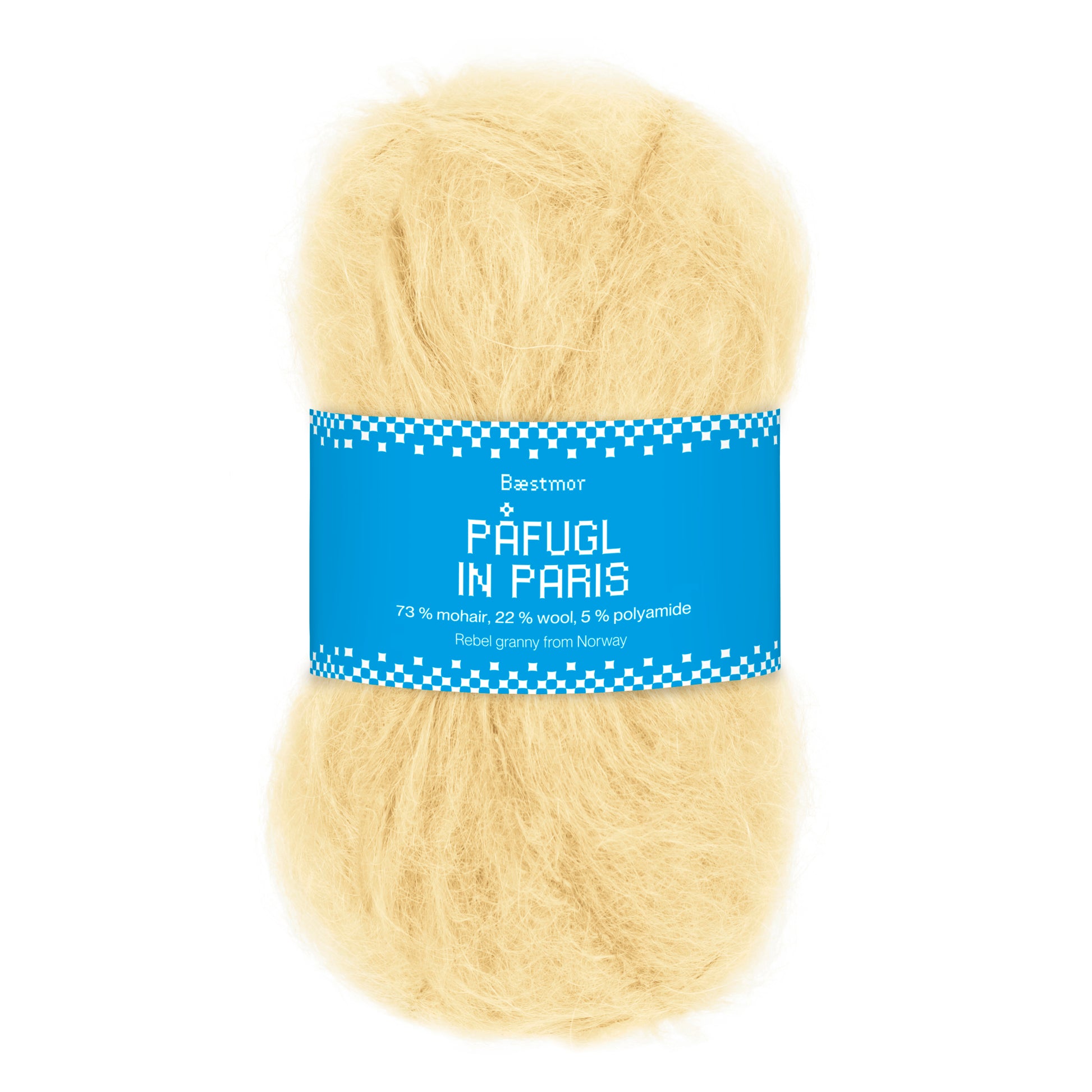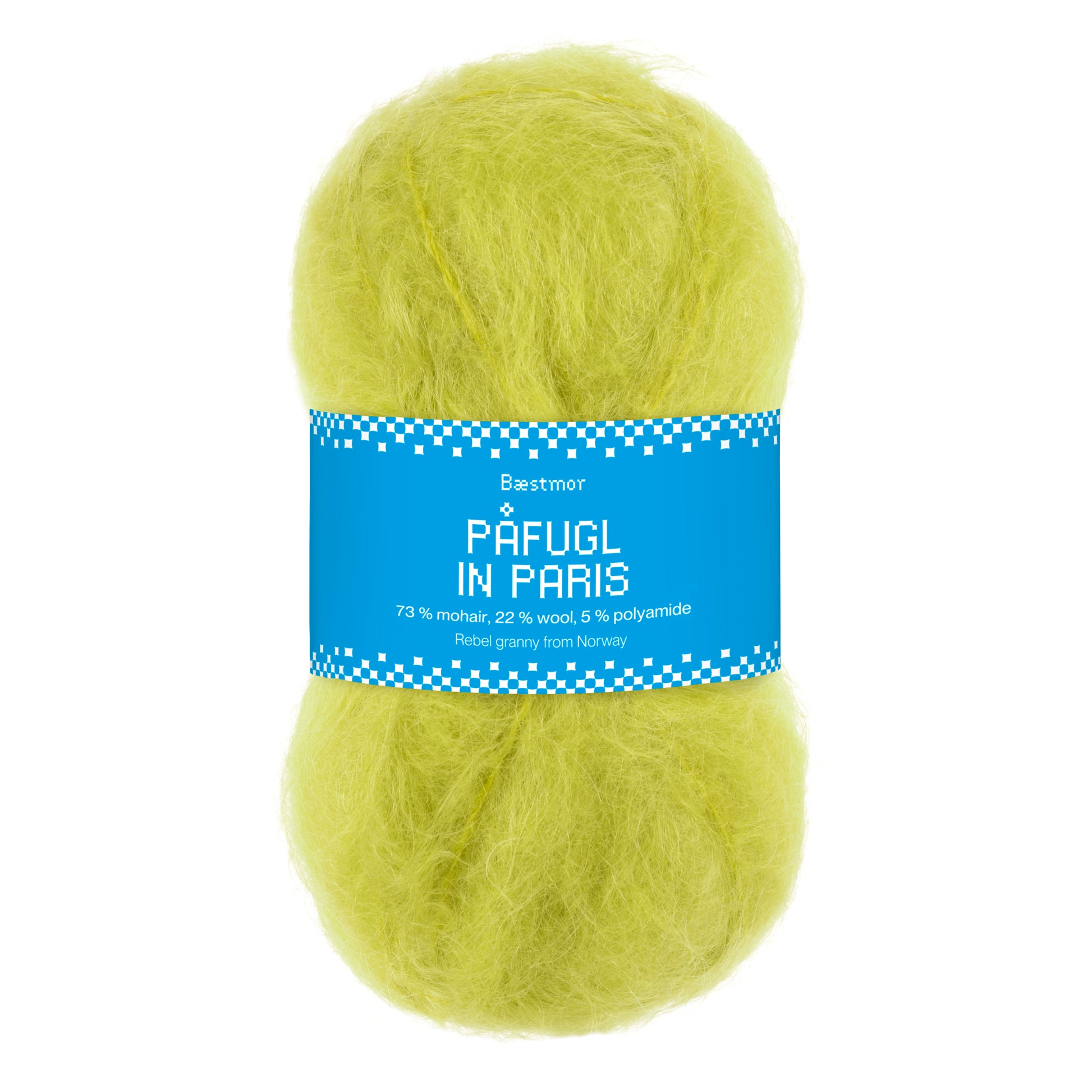 Påfugl in Paris fra Bæstmor er et eksklusivt børstet mohairgarn, som gir lette og luftige plagg.