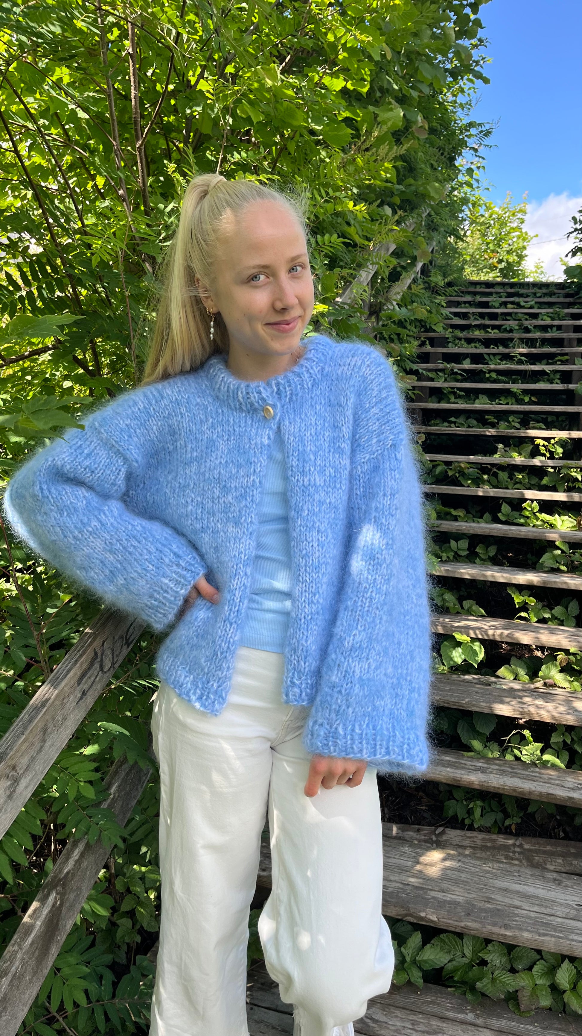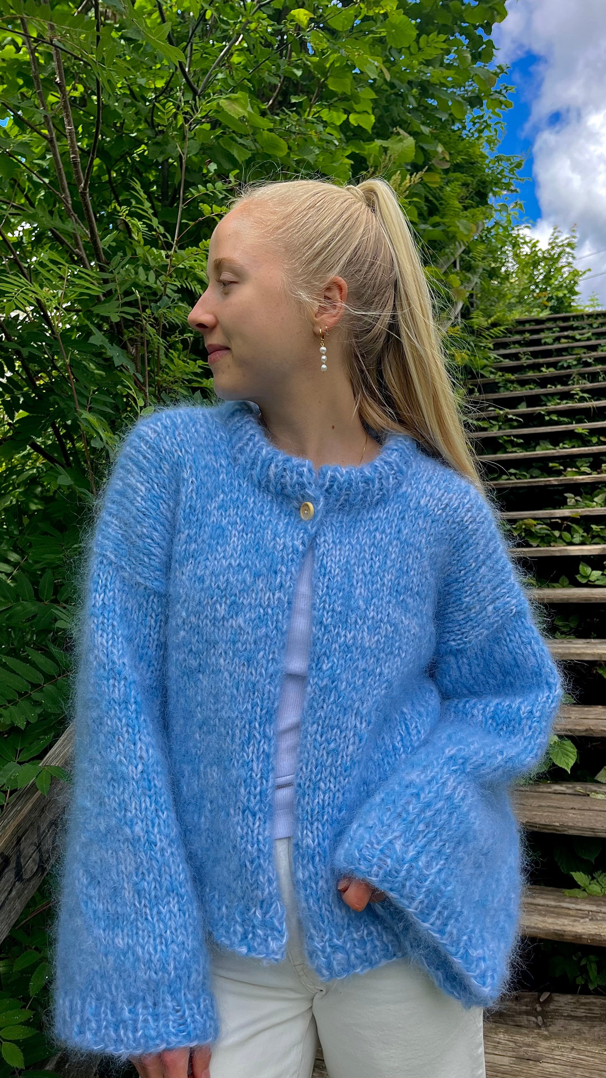 Garnpakken inneholder garn og oppskrift - både digital PDF som sendes på mail, og papirversjon. Knapp kjøpes seperat.