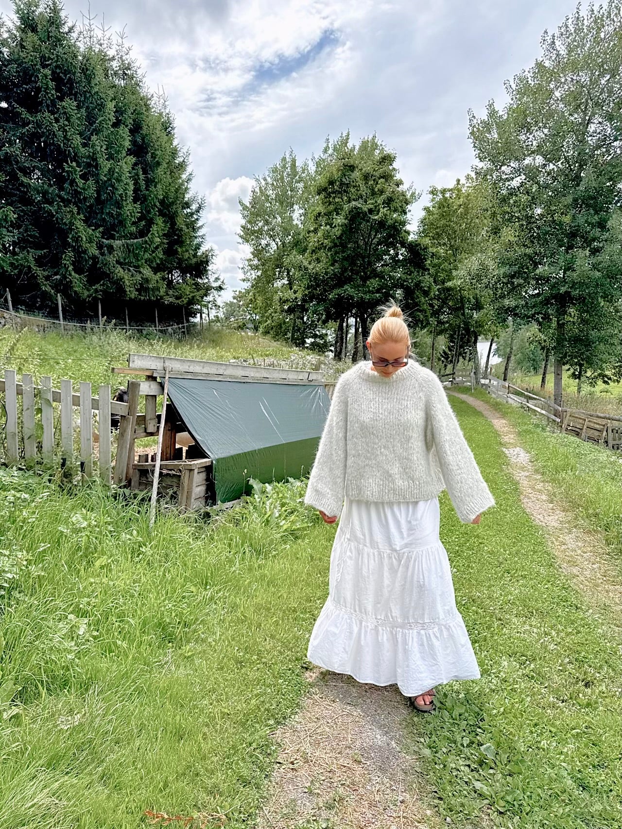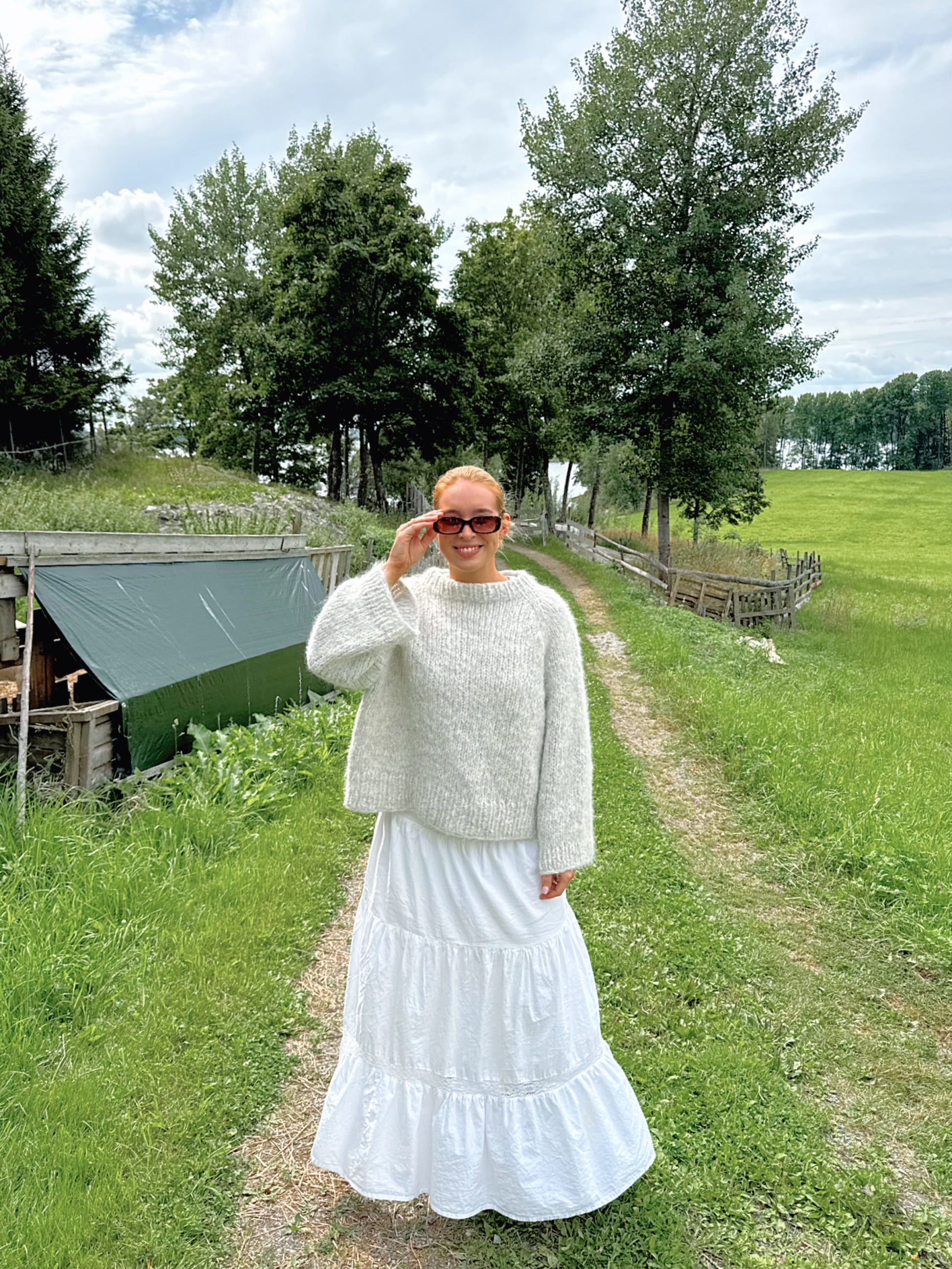 Det finnes hjelpevideoer av flere av teknikkene som brukes i oppskriften (legge opp masker, raglanøkning, sette av m til erme, løkkeopplegg, avfelling) på min TikTok/ Instagram: @mariatessem.strikk.