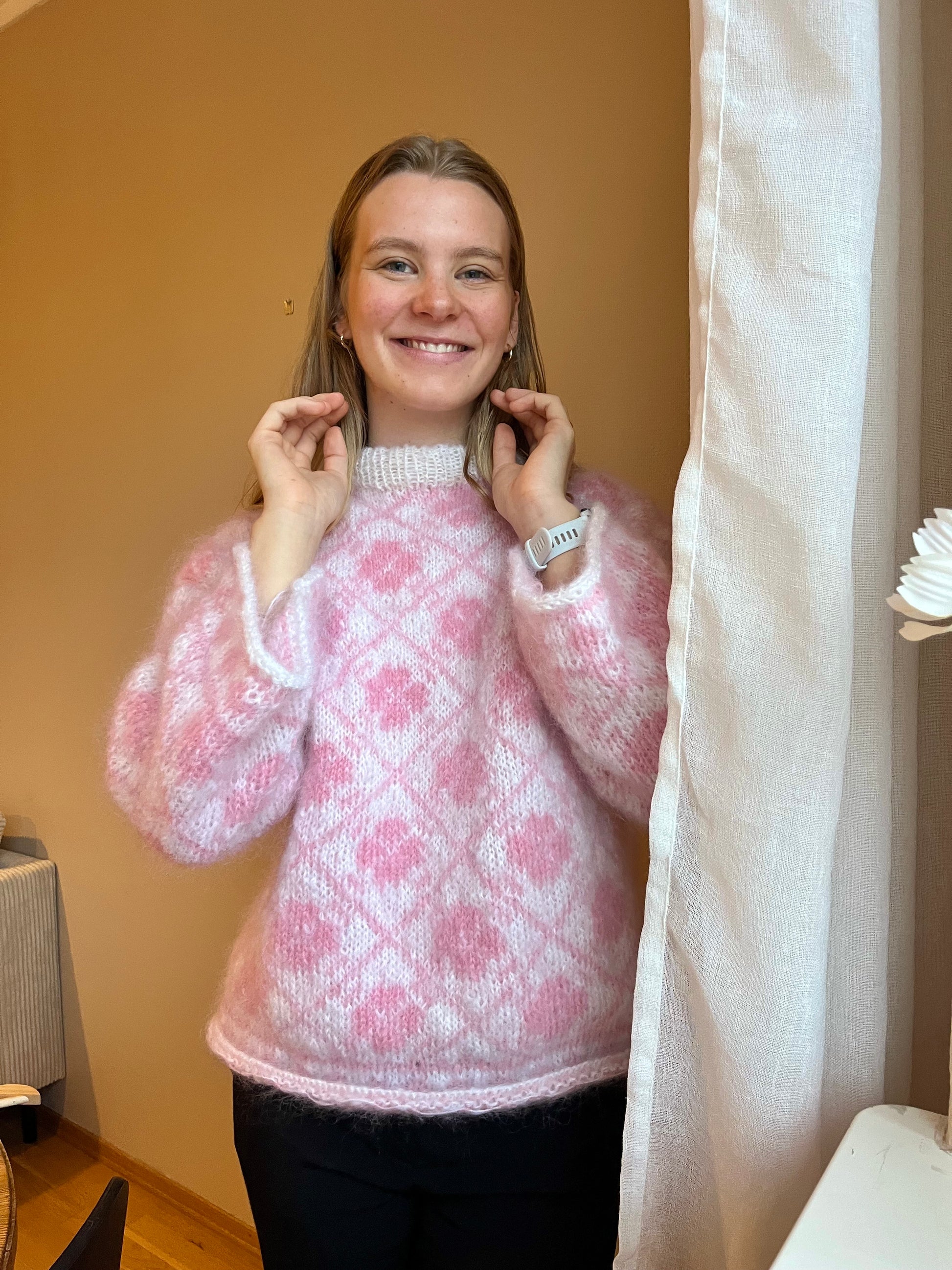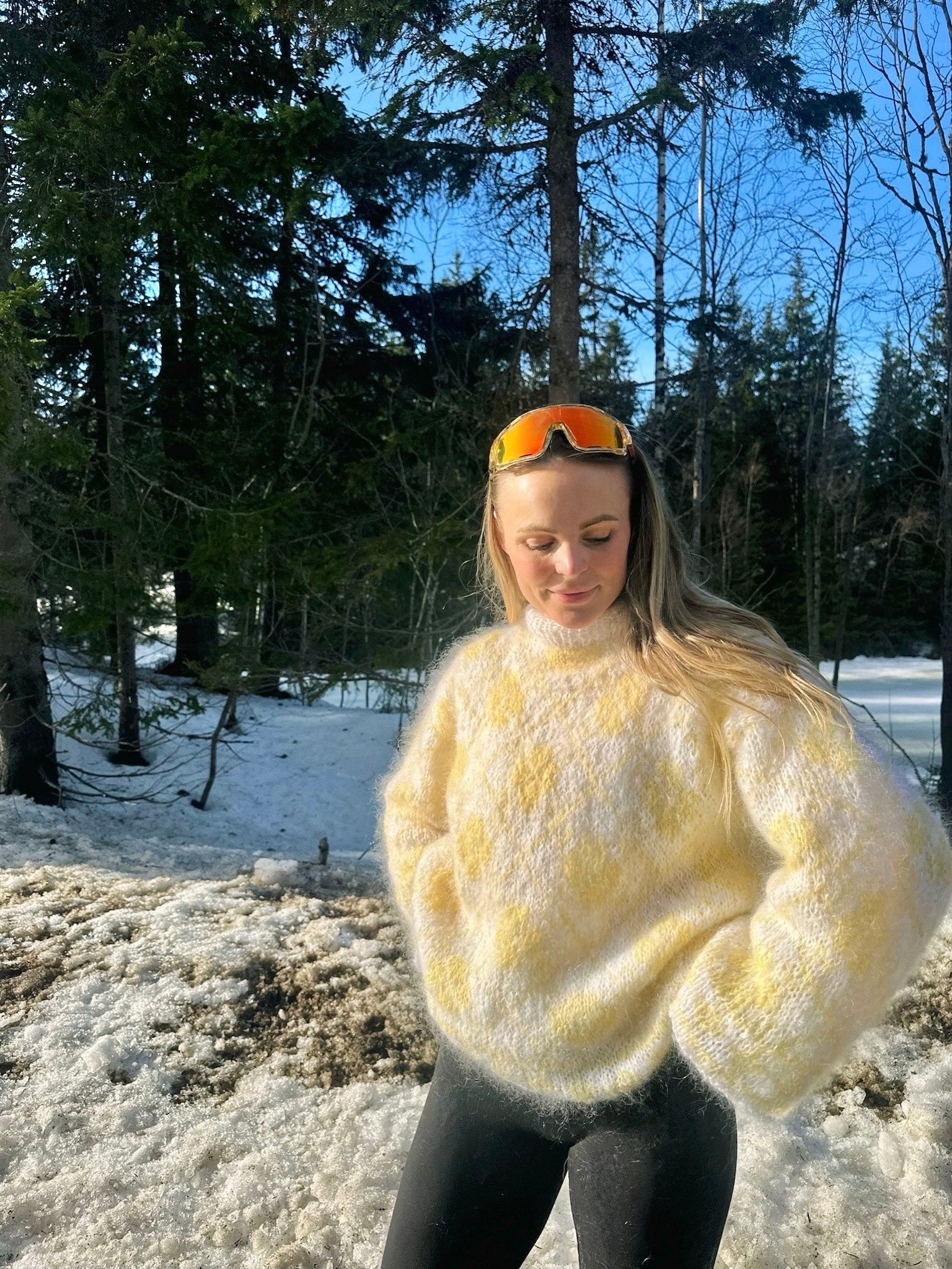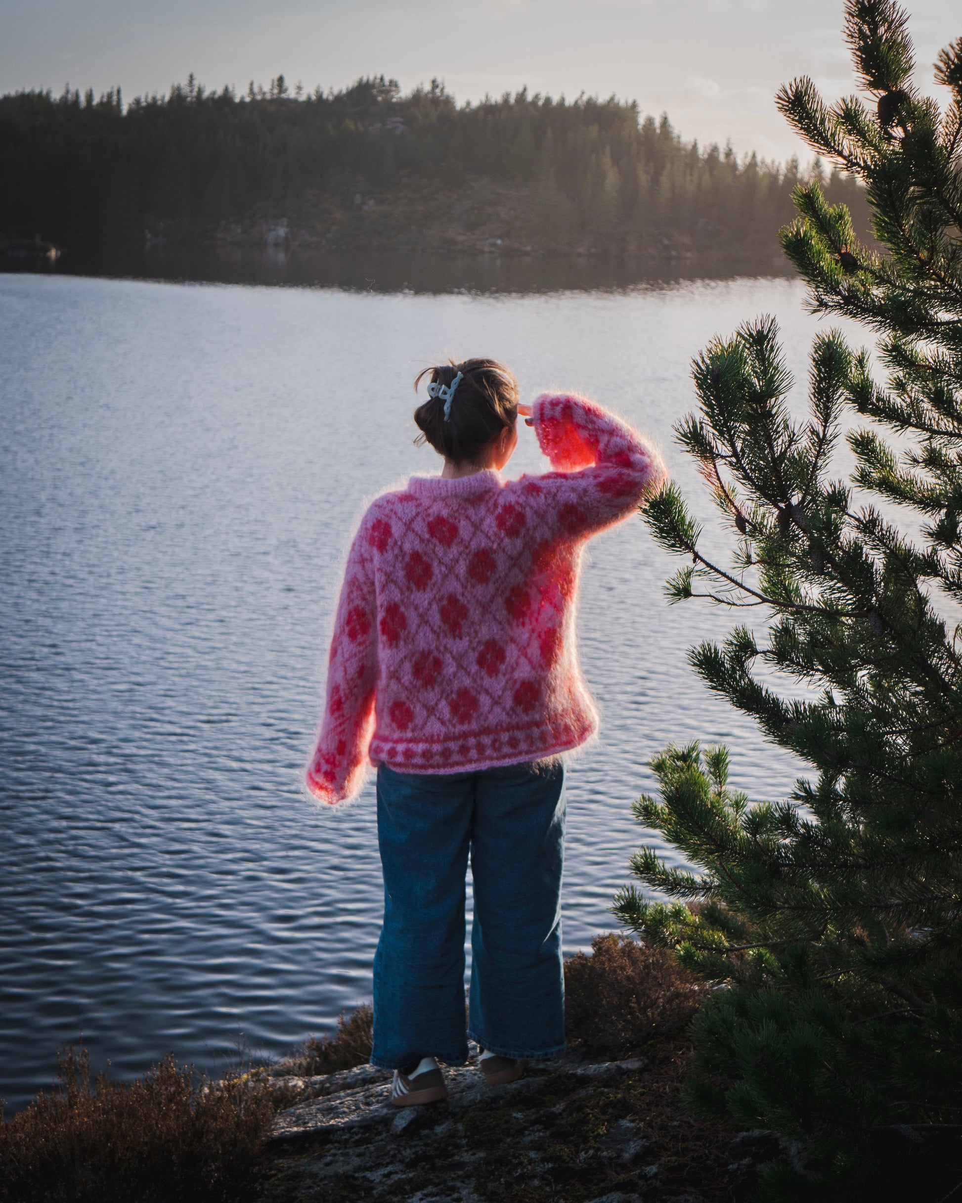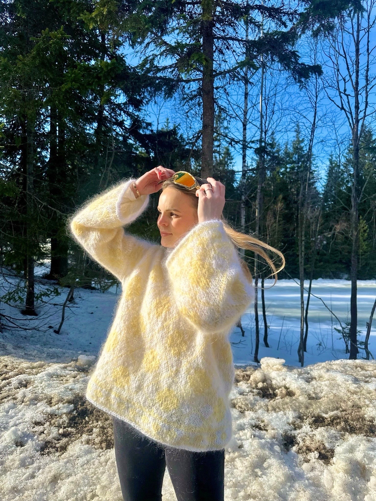 Genseren strikkes i èn tråd Soft fra Gjesdal Garn eller Påfugl in Paris fra Bæstmor.