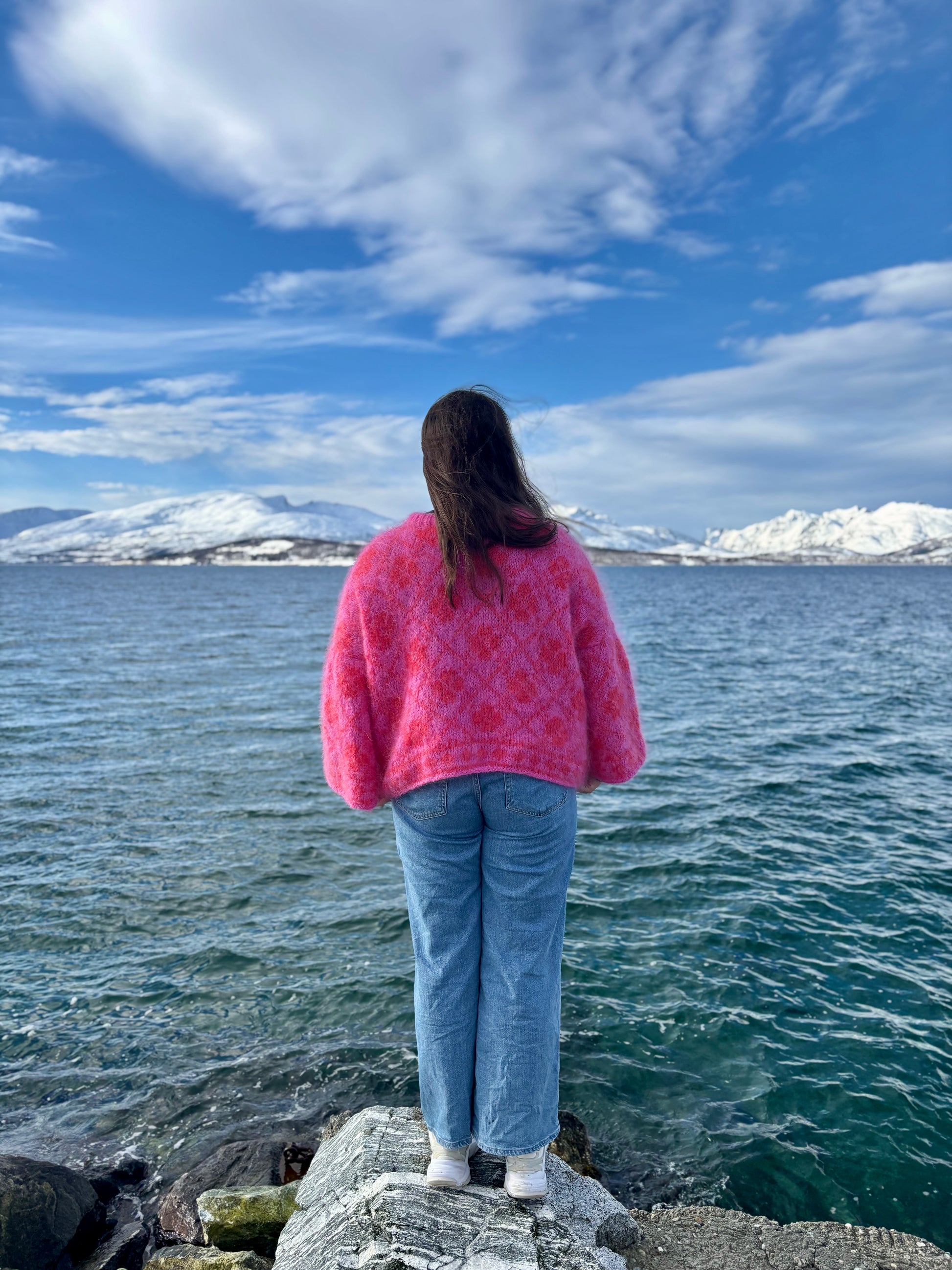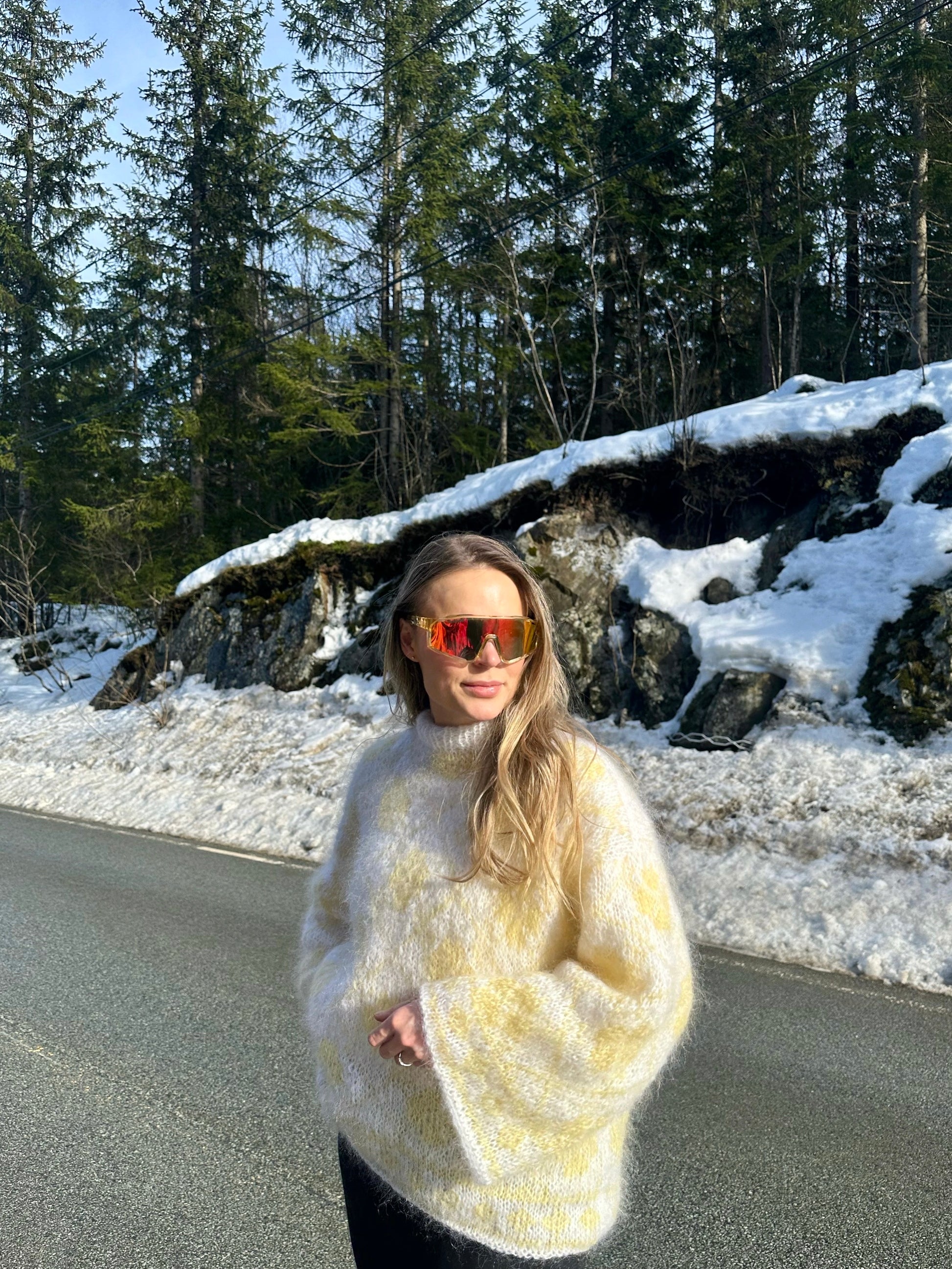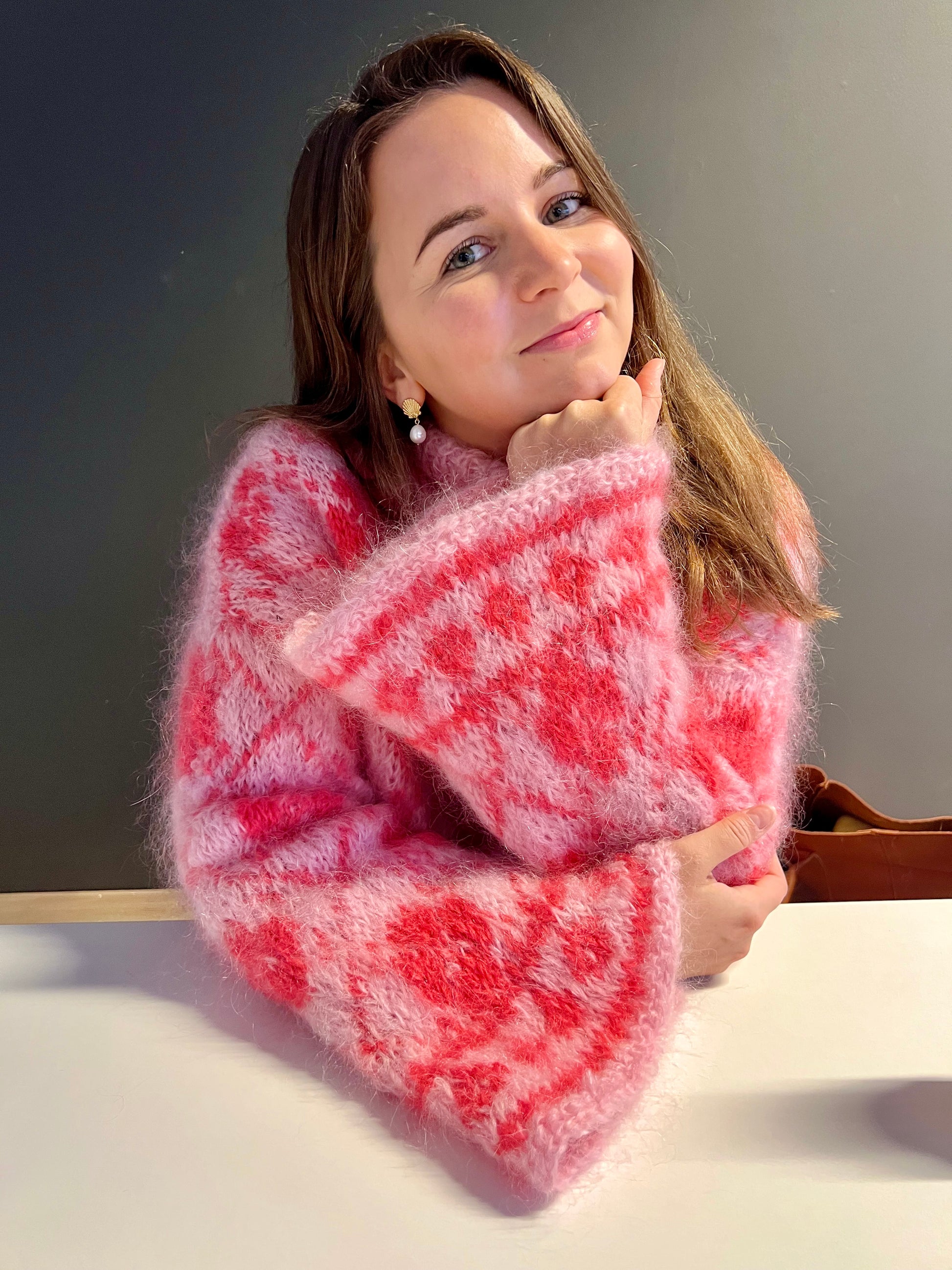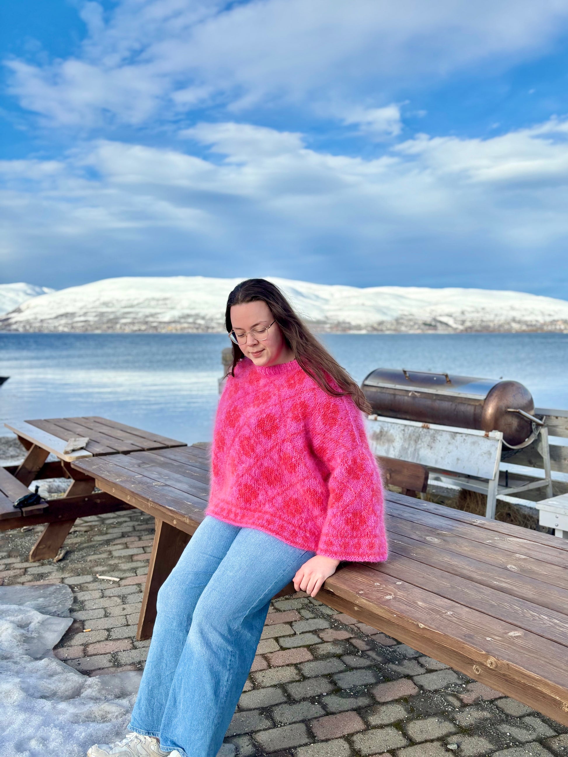 Genseren strikkes i èn tråd Soft fra Gjesdal Garn eller Påfugl in Paris fra Bæstmor.