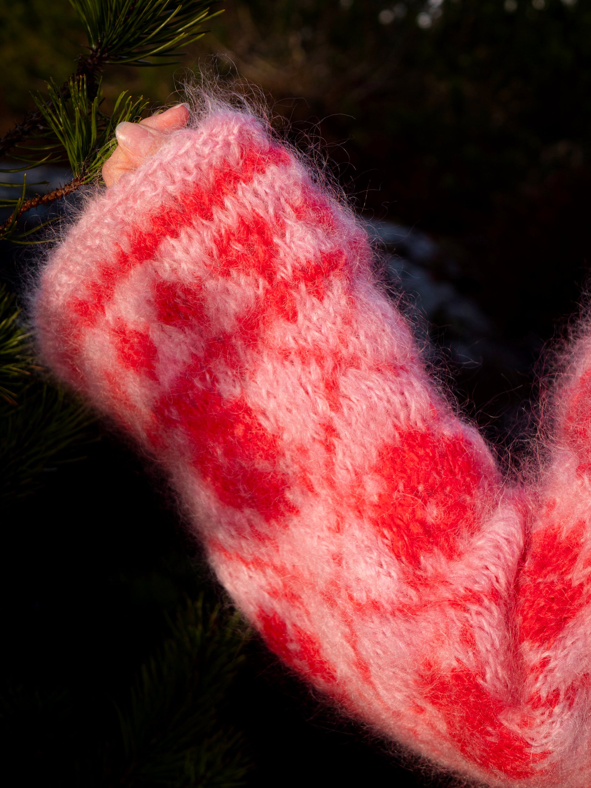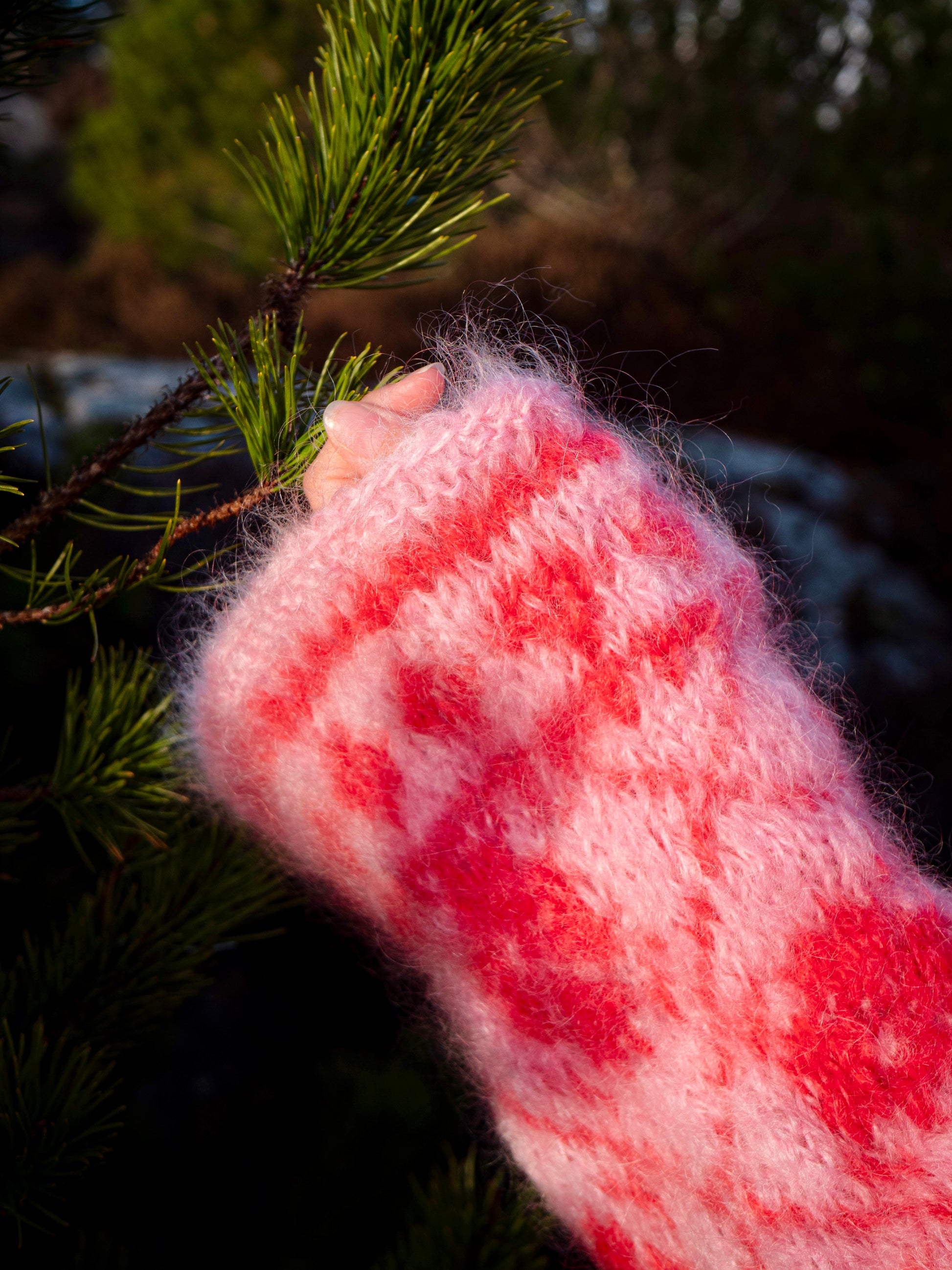 16 masker = 10 cm på pinne 6 mm med mønsterstrikk